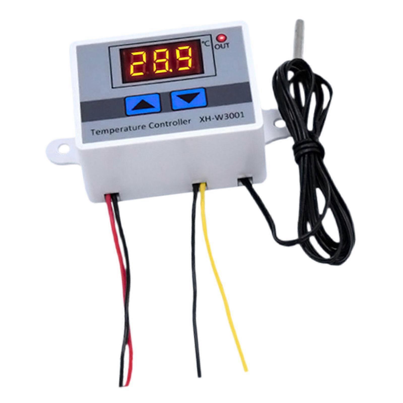 Description: Accurate Temperature Control: The Digital Temperature Controller is equipped with a high accuracy sensor, that monitors and adjusts the temperature in real time, ensuring accuracy and stability in temperature control.Digital Display: The Digital Temperature Controller features a clear digital display that shows the current and set temperatures in real time, making it easy for users to observe and adjust.Microcomputer Control: The built in microcomputer chip intelligently controls temperature changes, offering various modes and functions for temperature control.Safe and Reliable: With multiple protection features such as overheating protection and short circuit protection.Wide Application: Suitable for industrial, agricultural, household appliances, laboratories, aquaculture, hatching, greenhouse planting, etc. Specification: Temperature measuring range: -50C ~ 100CTemperature control range: -50C ~ 100CTemperature measuring accuracy: about 0.2CTemperature control accuracy: about 0.1C1 Meter waterproof probed head Size Chart: 60mmx45mmx31mm/2.36inchx1.77inchx1.22inch Package Includes: 1 Digital Temperature Controller Set Note: Please allow slightly errors due to manual measurement and different packages.