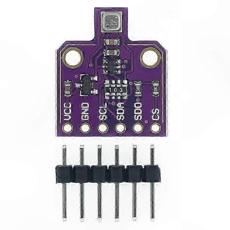 The BME680 is a digital 4-in-1 environmental sensor that measures gas, humidity, pressure, and temperature using proven sensing principles. It features an I²C interface, an onboard voltage regulator, and level-shifting circuitry for compatibility with both 3.3 V and 5 V systems. An SPI interface is also available for expansion. Typical applications include indoor air quality monitoring, home automation and control, Internet of Things (IoT) devices, weather stations, GPS enhancement (e.g., time-to-first-fix improvement, dead reckoning, slope detection), indoor navigation (e.g., floor change detection, elevator detection), outdoor navigation, leisure and sports applications, and vertical velocity indication (rise/sink speed). Target devices include mobile phones, tablet PCs, GPS devices, wearables, home weather stations, smart watches, navigation systems, gaming devices (e.g., flying toys), and IoT devices. Operating voltage: 1.7 V to 3.6 V Operating temperature range: –40 °C to +85 °C Communication interfaces: I²C (up to 3.4 MHz) and SPI (3-wire and 4-wire modes, up to 10 MHz) Humidity, pressure, and gas sensing functions can be individually enabled or disabled. Typical current consumption: – 2.1 µA at 1 Hz for humidity and temperature only – 3.1 µA at 1 Hz for pressure and temperature only – 3.7 µA at 1 Hz for humidity, pressure, and temperature Gas sensor specifications: – Response time (33–63%):