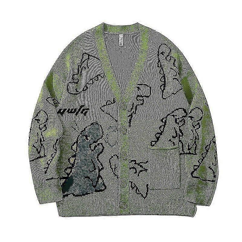 Dinosaur Patterned Black Cardigan Sweater Suitable for Various Casual Outfits