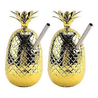2 Paket Ananas İçecek Bardakları, Gerilmiş Saman ile 450Ml Ananas Bardak, Hawaii Luau Parti Kupası