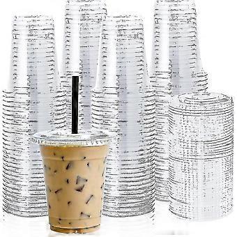 [100 Setler] Düz Kapaklı 12oz Şeffaf Plastik Bardaklar, Tek Kullanımlık İçme Bardakları, Buzlu Kahve, Smoothie, Bulamaç veya Herhangi Bir Soğuk İçecek İçin 12 Oz Plastik Bardaklar