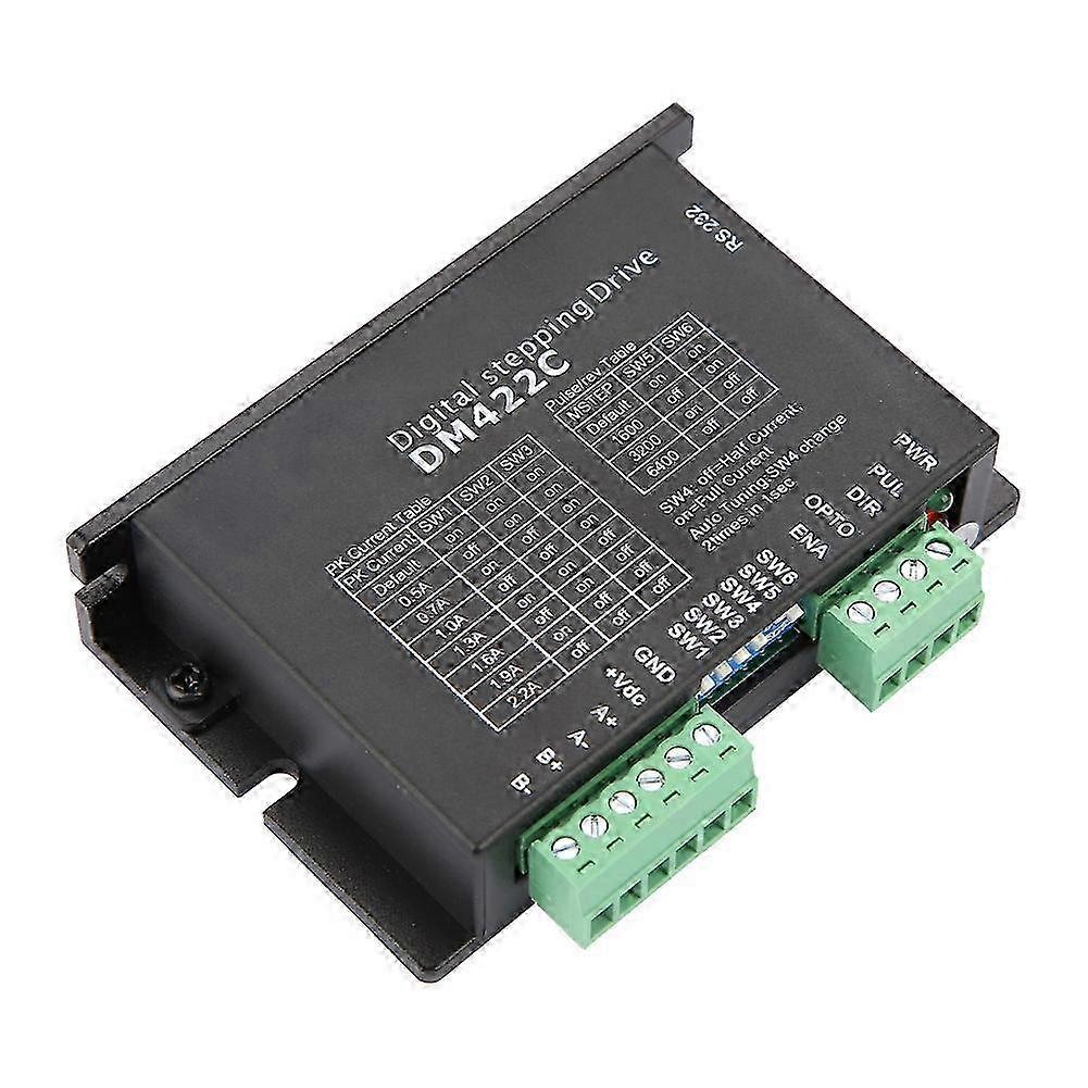 The DM422C is a versatility fully digital stepping driver with advanced control algorithm. It brings a unique level of system smoothness, providing optimum torque and nulls mid-range instability. The self-test and auto-configuration technology offers optimum responses with different motors and easy-to-use. The driven motors can run with much smaller noise, lower heating, smoother movement than most of the drives on the markets.Its unique features make the DM422C an ideal solution for applications that require low-speed smoothness.Features:Anti-Resonance, provides optimum torque and nulls mid-range instabilityMotor self-test and parameter auto-setup technology, offers optimum responses with different motorsMulti-Stepping allows a low resolution step input to produce a higher microstep output for smooth system performanceMicrostep resolutions programmable, from full-step to 102,400 steps/revSupply voltage up to +36 VDCOutput current programmable, from 0.3A to 2.2APulse input frequency up to 75 KHzTTL compatible and optically isolated inputAutomatic idle-current reductionSuitable for 2-phase and 4-phase motorsSupport PUL/DIR and CW/CCW modesOver-voltage, over-current, phase-error protectionsApplications:Suitable for a wide range of stepping motors, from NEMA frame size 14 to 23. It can be used in various kinds of machines, such as laser cutters, laser markers, high precision X-Y tables, labeling machines, and so on. Its unique features make the DM422C an ideal solution for applications that require low-speed smoothness.Specification:Model: DM442CRated voltage: 24 (V)Speed of response frequency: 200 (KHz)Fit range: 42 series stepper motorWeight: Approx.104g/3.7ozPackage list:1 x Stepper Motor Controller Driver