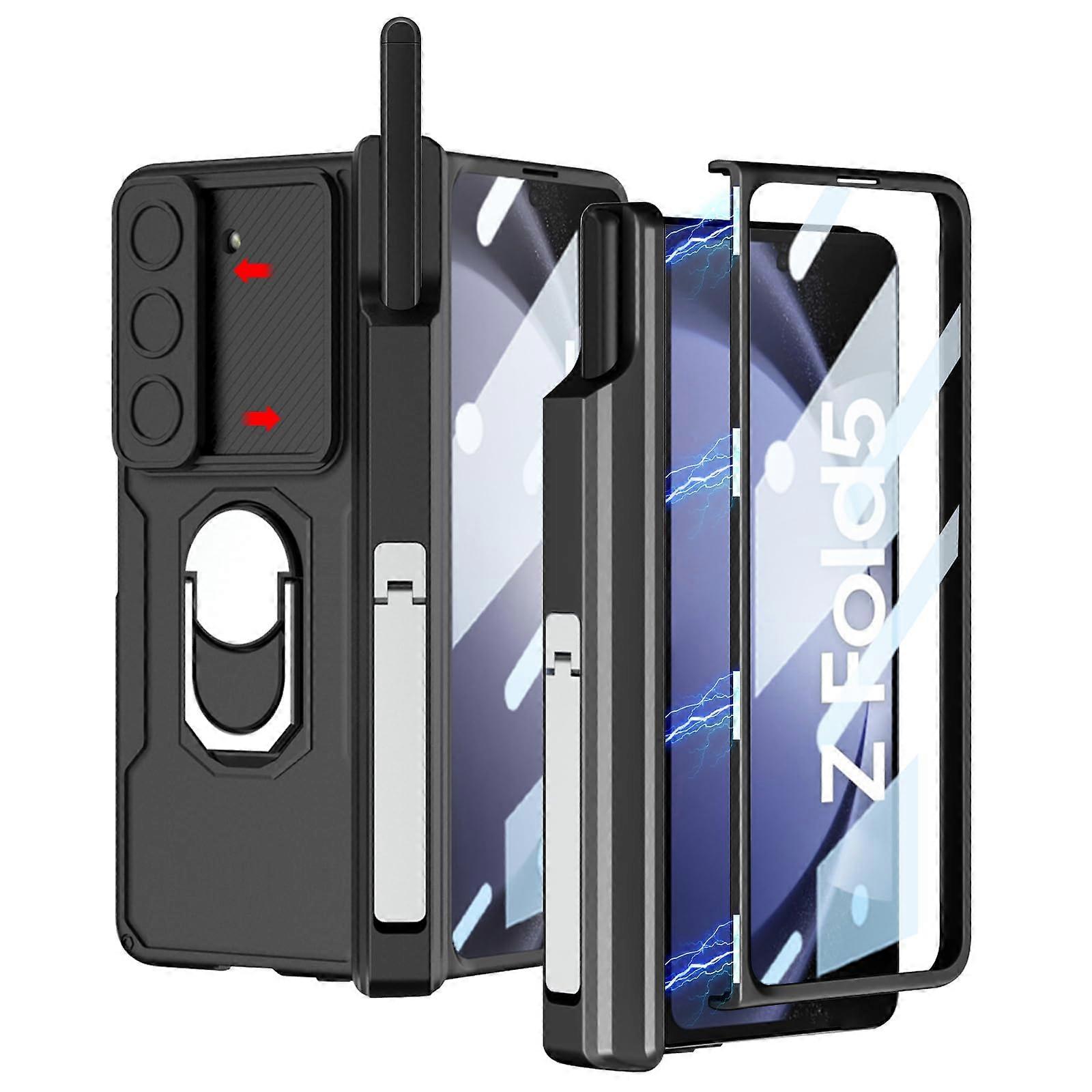 DOOTOO for Samsung Galaxy Z Fold 5 Case with S Pen Holder & Hinge Coverage Protection [Ring Kickstand]