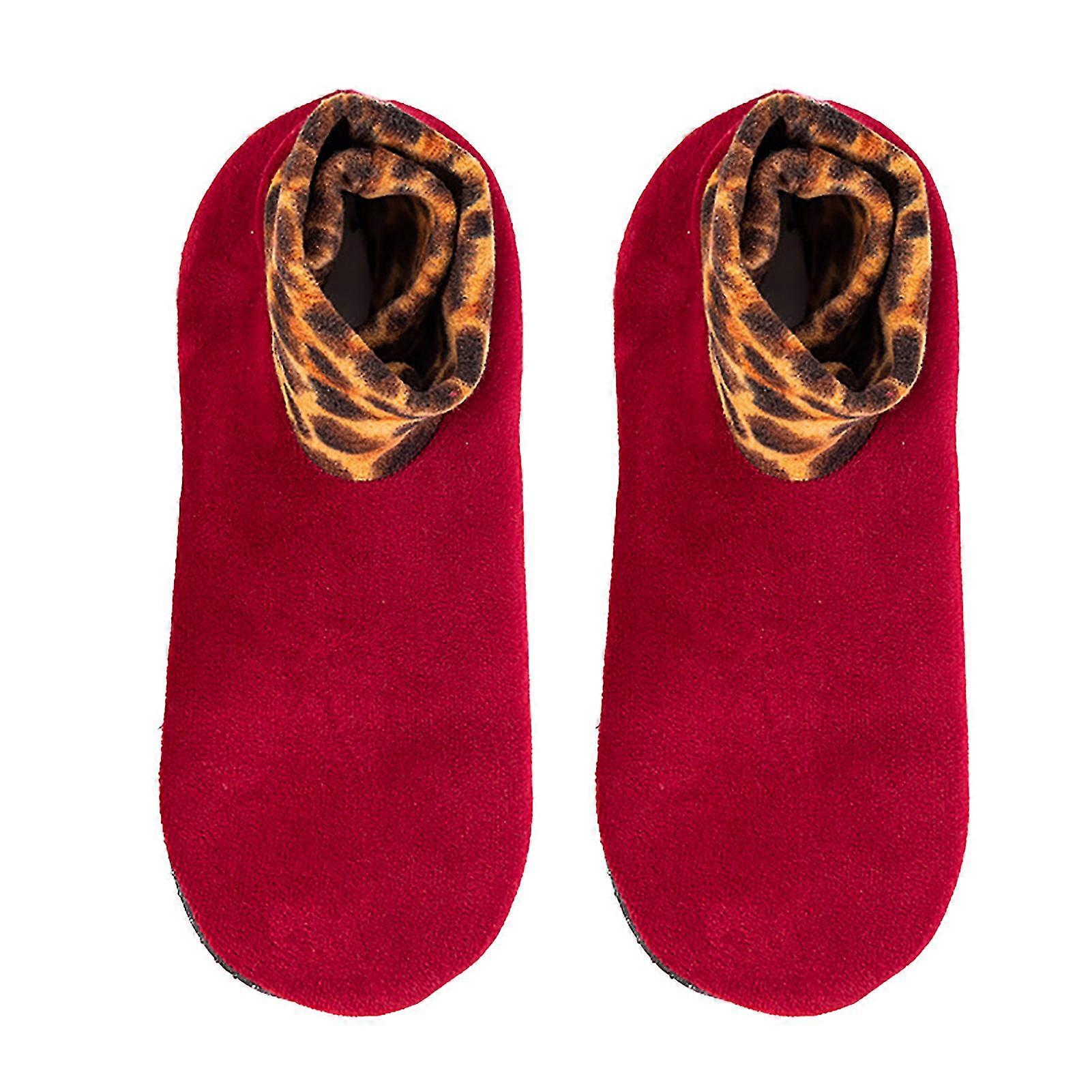 Double Layer Women's Plush Lining Thick Bottom Slippers Leopard Print Splicing