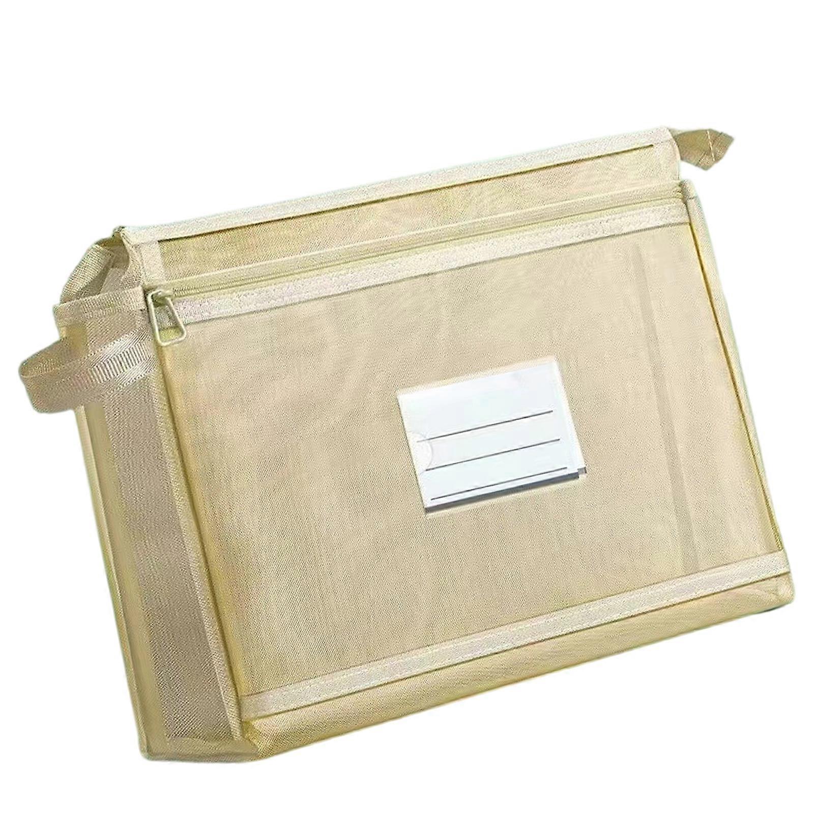 Double Layered Mesh File Bag Document Organiser Carrying Bag With Handle Clear Label Window Handheld Book Carrying Case Yellow