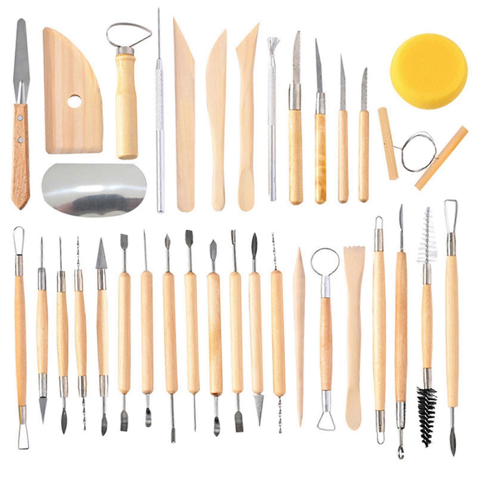 Dual-end Clay Sculpting Tools Wooden Handle Beginners Set for Pottery Shaping