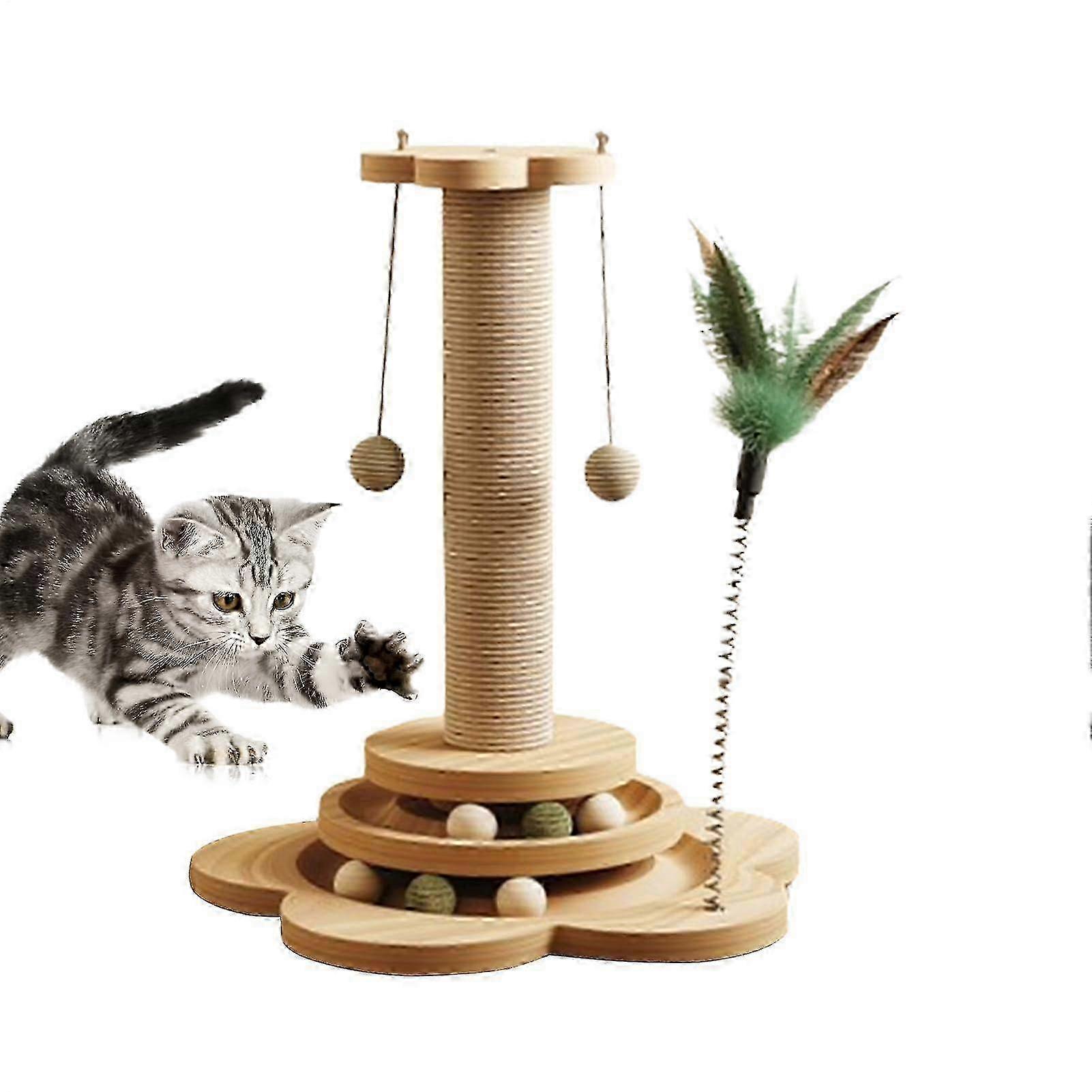 e Cat Scratching Post 40cm Tall Vertical Scratch Sisal Rope Sisal Ball Turntable Feather Stick Modern Tower 40x25x25cm