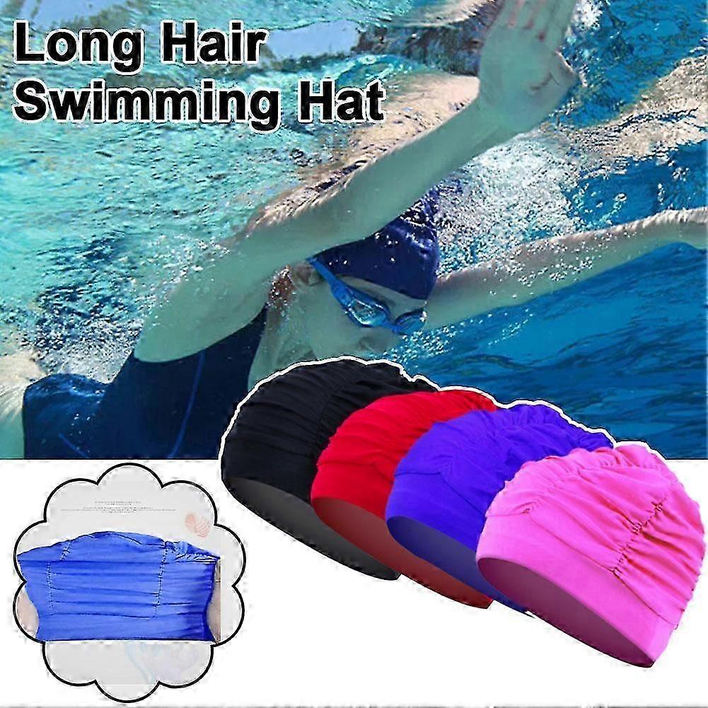 Elastic Nylon Swimming Cap Long Hair Swimming Hat Bath Hat Pure Color Unisex