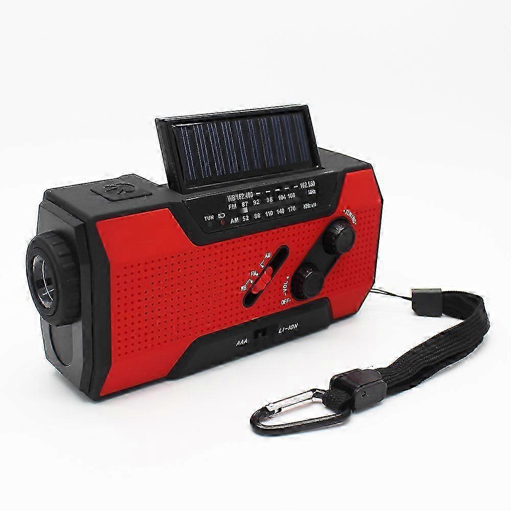 Emergency Radio with AM/FM (Red) Solar/Hand Crank/Portable Rechargeable Battery Charger 2000mAh with LED Flashlight and Alarm