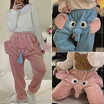 Erkek Bayan Fil / domuz 3d Flanel Pijama Pantolon Çift Komik Kış Sıcak Rahat Yumuşak Ev Pantolon Pijama Hediyeler