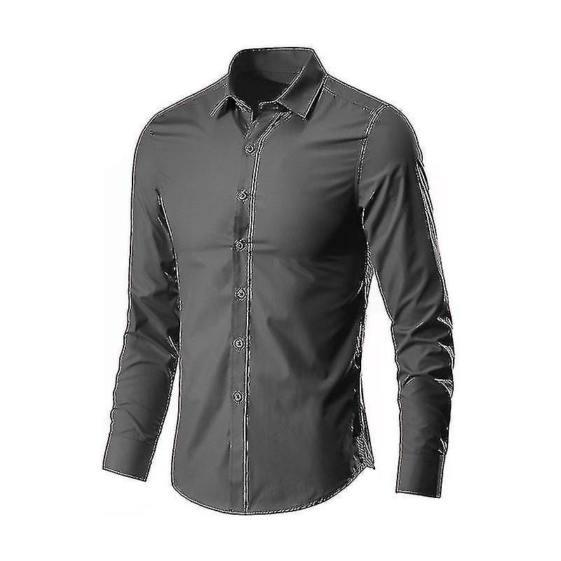 Men's Dress Shirt Long Sleeve Slim Fit Solid Color Casual Shirts