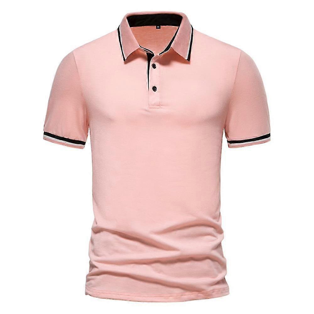 Mens Short Sleeve Polo Shirts Summer Casual Tops (pink)