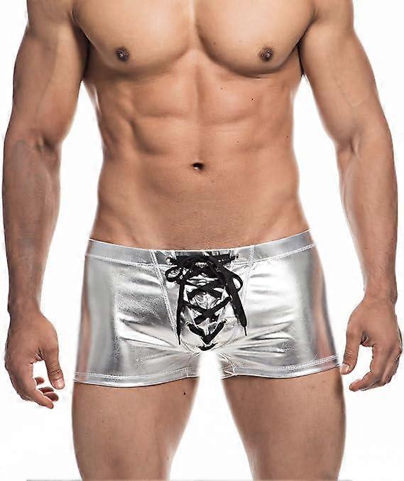 Men's Metallic Shorts Yoga Shiny Boxer Briefs Shiny Hot Pants with Draswtring