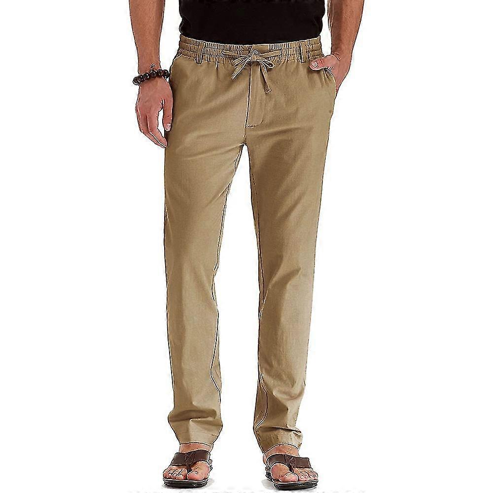Men Plain Drawstring Work Chinos Pants Straight Leg Casual Trousers