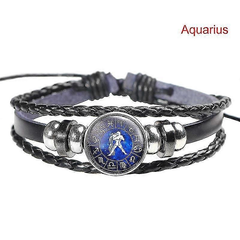 12 Zodiac Signs Braided Leather Bracelet Punk Braid Jewelry For Men Women