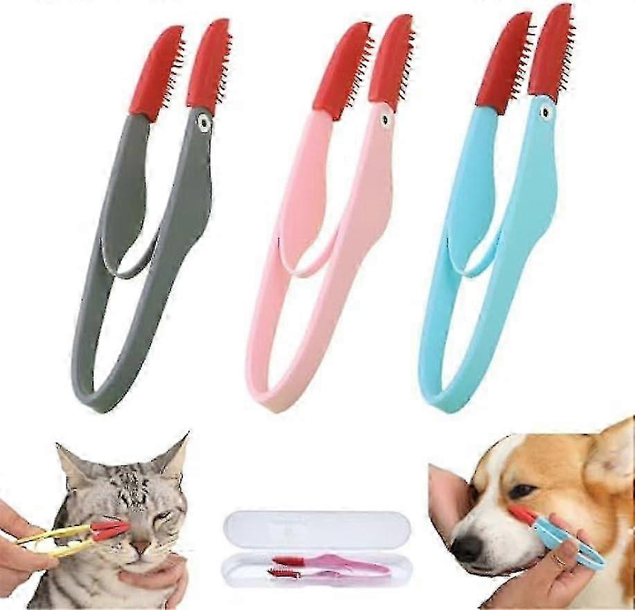 Pet Tear Stain Brush, Pet Eye Stain Comb for Cats & Dogs, Soft Washable Pet Grooming Brush with Handle (Gray, Pink, Blue)