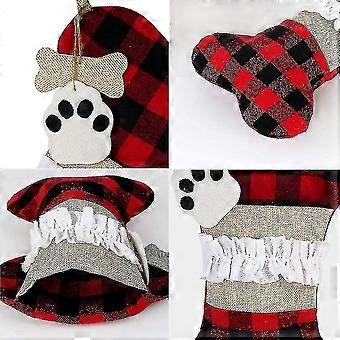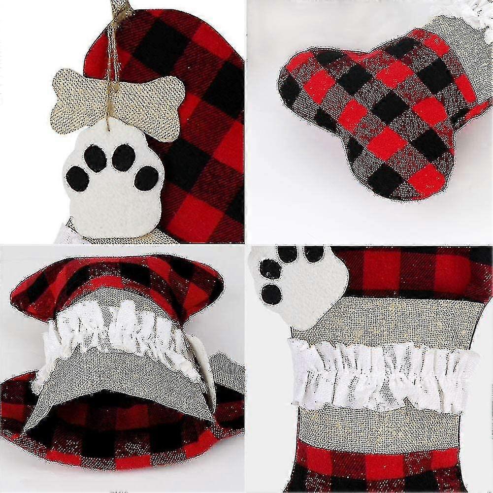 Pet Dog Christmas Stockings Set Of 2, Buffalo Plaid Christmas Stockings Large Bone Shape Hanging Pets Stockings For Decorations