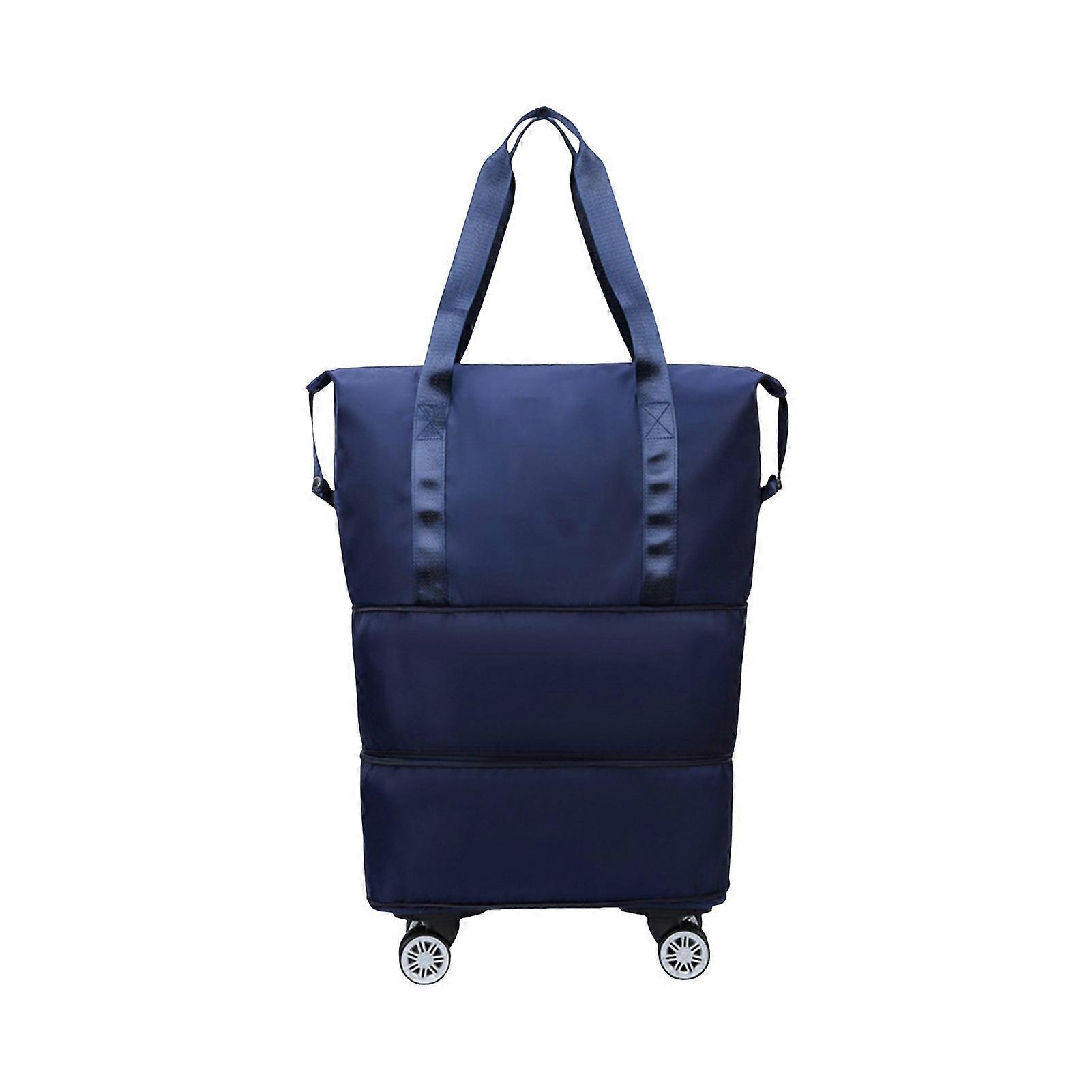 Durable Oxford Cloth: Crafted from wear-resistant, scratch-resistant, and waterproof Oxford cloth with a polyester lining, this travel bag ensures long-lasting use and protection for your belongings. Enhanced Mobility: Featuring four detachable wheels at the bottom, this duffel bag transforms into a standalone storage bag. The 360 degree rotating wheels enable smooth movement in any direction, making it effortless to navigate through airports, train stations, or bustling streets. Adjustable Capacity: Equipped with two bottom zippers, this retractable travel bag allows you to expand or reduce its capacity as needed. Starting at 40*22*32cm, you can increase the height to 45cm or 61cm by expanding the layers, providing flexibility without worrying about luggage restrictions. Organized Interior Design: With 1 main compartment, 1 inner zippered wet and dry pocket, and 2 slot pockets, this organizer offers ample space for bulky items, separate storage for wet or dirty belongings, and designated slots for small essentials like phones and keys. Versatile Usage: Ideal for various activities such as sports, travel, weekend getaways, shopping, hiking, and camping, this multi-functional organizer accommodates essential clothes, electronics, shoes, toiletries. Description: Introducing the ultimate travel bag crafted from wear-resistant, scratch-resistant, and waterproof Oxford cloth with a polyester lining for durability. This versatile travel duffel bag features four detachable wheels at the bottom, allowing for easy maneuverability on any terrain. The 360 degree rotating wheels ensure smooth movement in all directions, making it effortless to navigate through crowded airports or busy streets without straining your arm or shoulders. Equipped with two zippers at the bottom, this retractable travel bag offers adjustable capacity. The standard size is 40*22*32cm, but expanding the layers increases the height to 45cm and 61cm respectively, providing flexibility based on your needs while ensuring compliance with luggage restrictions. The bag includes 1 main compartment, 1 inner zippered wet and dry pocket, and 2 slot pockets for organized storage. Ideal for 5-7 day excursions, this organizer accommodates essential clothing, electronics, shoes, and toiletries. Whether you're engaging in sports activities, traveling, weekend getaways, shopping, hiking, or camping, this travel bag is your perfect companion. Use it as an overnight bag, a standard travel bag, or expand it for additional storage space. Experience convenience and functionality with this versatile and spacious travel companion. Item Name: Travel Bag Material: Oxford Cloth Applicable Gender: Neutral Style: Urban Simplicity Popular Elements: Letters Features: with Rolling Wheels, Waterproof, Expandable Size Details: L: 40cm/15.75", W: 22cm/8.66", H: 32cm/12.6" (Approx.) Notes: Due to the light and screen setting difference, the item's color may be slightly different from the pictures. Please allow slight dimension difference due to different manual measurement. Package Includes: 1 x Travel Bag