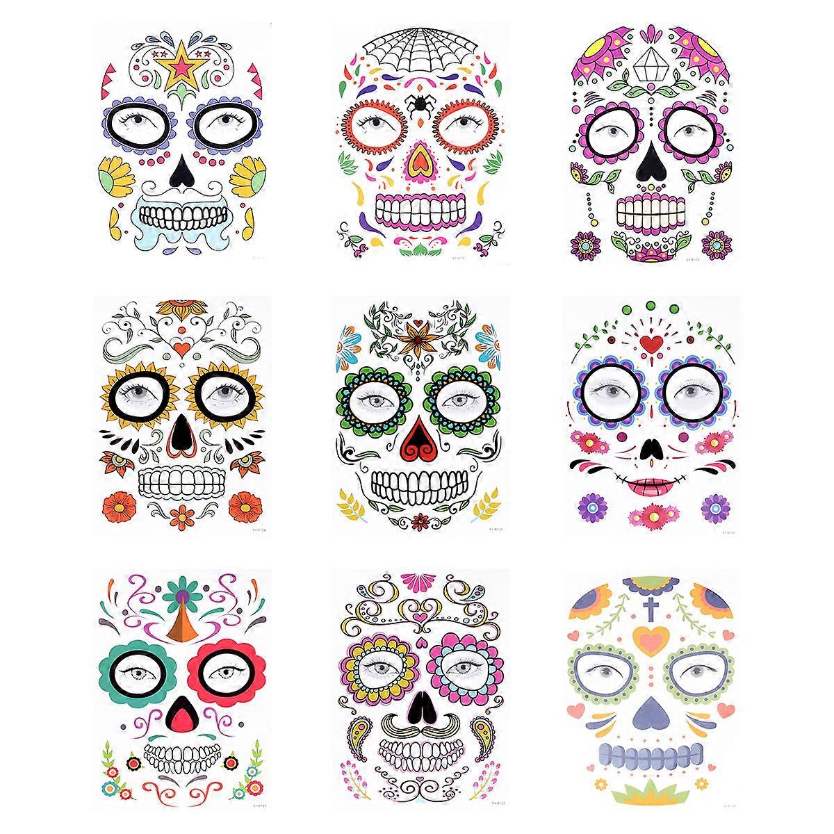 Face Stickers Temporary Face Halloween Partygoers Assorted Color 21.3x15.2CM Spooky Atmosphere 9 Sheets