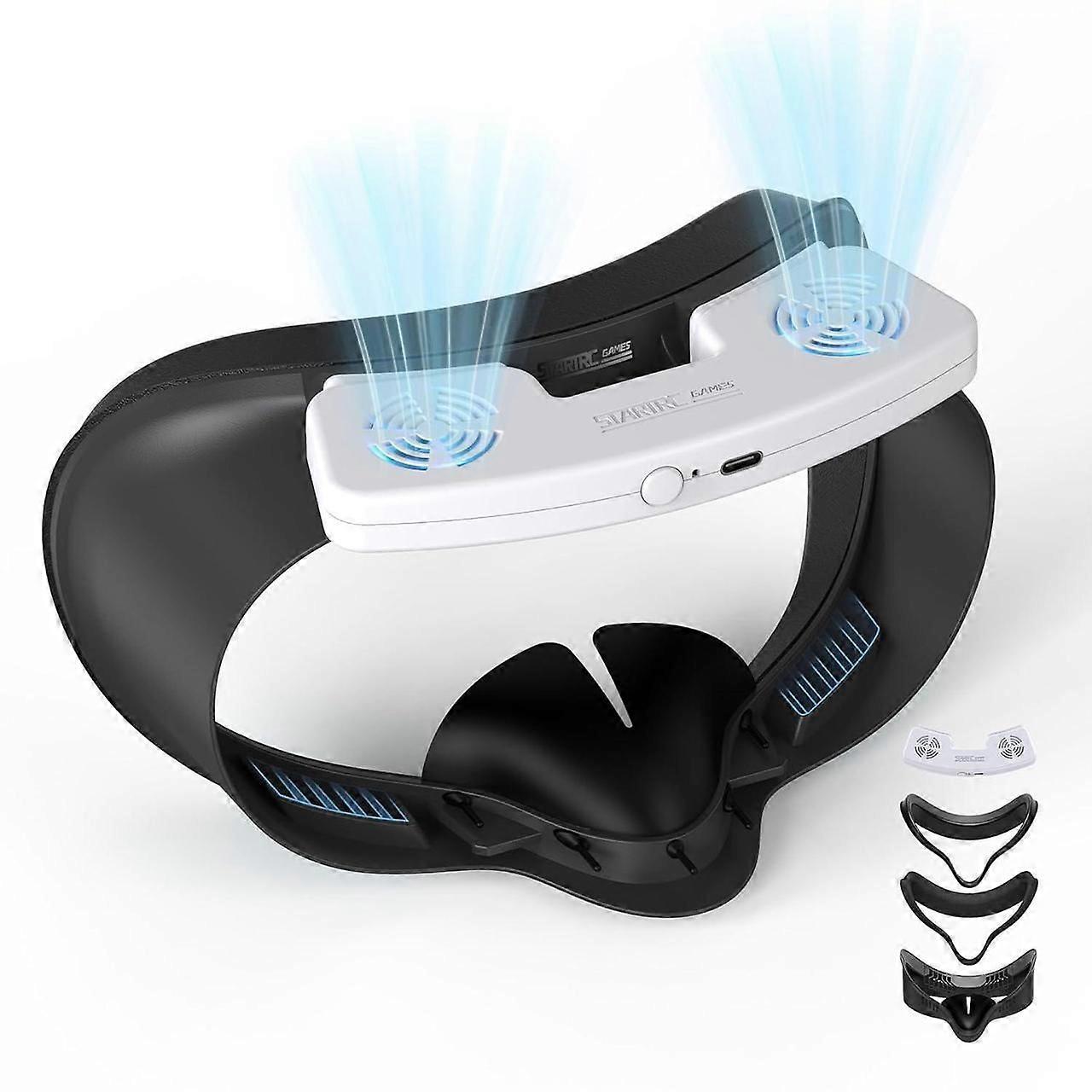 Facial Interface Cooling Fan for Meta Quest 3S Accessories, Soft PU Leather & Ice Silk Cotton Face Pad Compatible with Oculus Quest 3S, Adjustable Fan