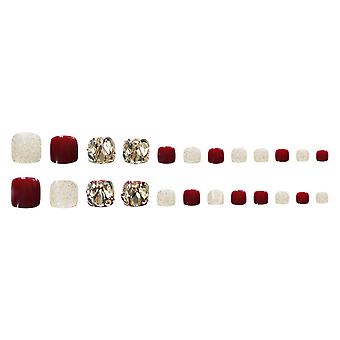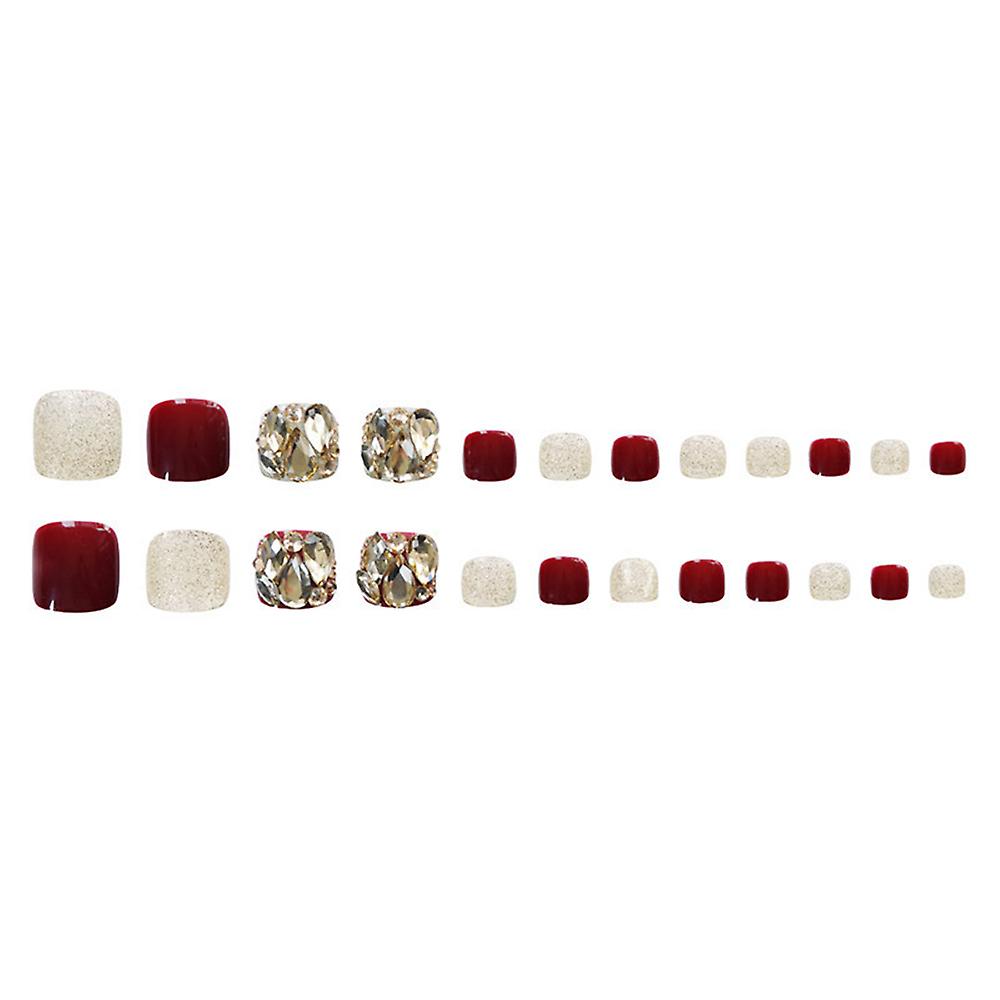 False Toenail Salon Set Removable Wine Red Transparent Nail With Shiny Glitters