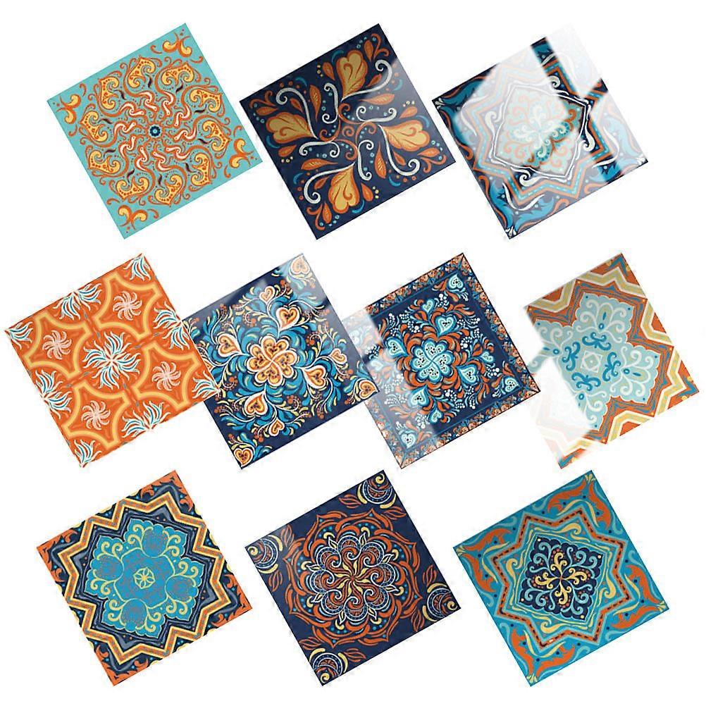 Tile Wall Sticker Retro Style Wall Decals For Kitchen Bathroom Cabinet Assorted Color 10X10CM 10pcs 10Set