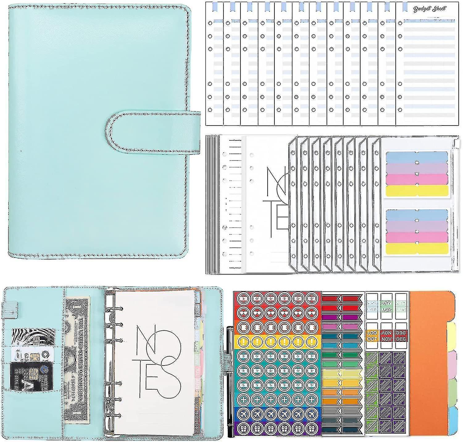 [Super Value Package] The binder set contains all the accessories you need to record expenses and organize cash. You will get 1 A6 PU leather budget binder, 8 budget cash envelopes, 12 budget sheets, and 5 customized color sheets DIY stickers and 59 sheets of loose-leaf paper (two different kinds of loose-leaf paper) and 5 sheets of colored paper. The Budget Binder Value Set with Cash Envelopes will help you manage your money and achieve your budget goals.[High-quality Budget Binder] A6 budget binder is made of high-quality pu leather, smooth and comfortable to the touch. With 6 compartments and 2 pen rings, it can store important items such as pens, passports, ID cards, bank cards, cash, checks, etc. With magnetic snap button, it is easy to use.[Perfect Budget Envelope And Budget Table] The zippered budget envelope is made of waterproof pvc, soft, dustproof, tear-resistant, translucent design, easy to identify quickly and easily, very suitable for storing bills, invoices, cash, coupons , Cards, stamps, etc. The double-sided budget sheet is made of extra-thick paper, which is not easy to tear. Can help you deal with bills and track your income and expenses.[Customized Color DIY Stickers] We provide 5 pieces of 4 different customized stickers, namely: color stickers (including two different color stickers), event stickers, time stickers and target stickers. These stickers will better help you manage your funds and set budget goals, and make your schedule more unique.[Easy to Use] The budget binder has a six-ring design. You can open it by pressing the upper and lower ends of the ring at the same time, and then add or remove binder accessories. When closing, just press the open buckle toward the middle. Suitable size, easy to carry, suitable for school, office, travel and family, can be easily put into handbag, backpack, suitcase or table.Package includes: 1Budget Binder 8 Budget Cash Envelope 12 budget sheets 2 color stickers 59 loose-leaf paper 3 other stickers 5 colored paperProducts from NIUNIU's store