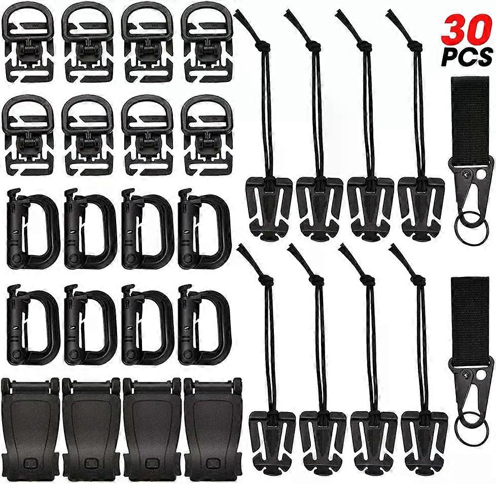 fitness 30 Pcs Molle Attachments Kit Tactical Accessories Elastic Strap D-Ring Grimloc Clip Web Dominators Key Ring Holder for Backpack