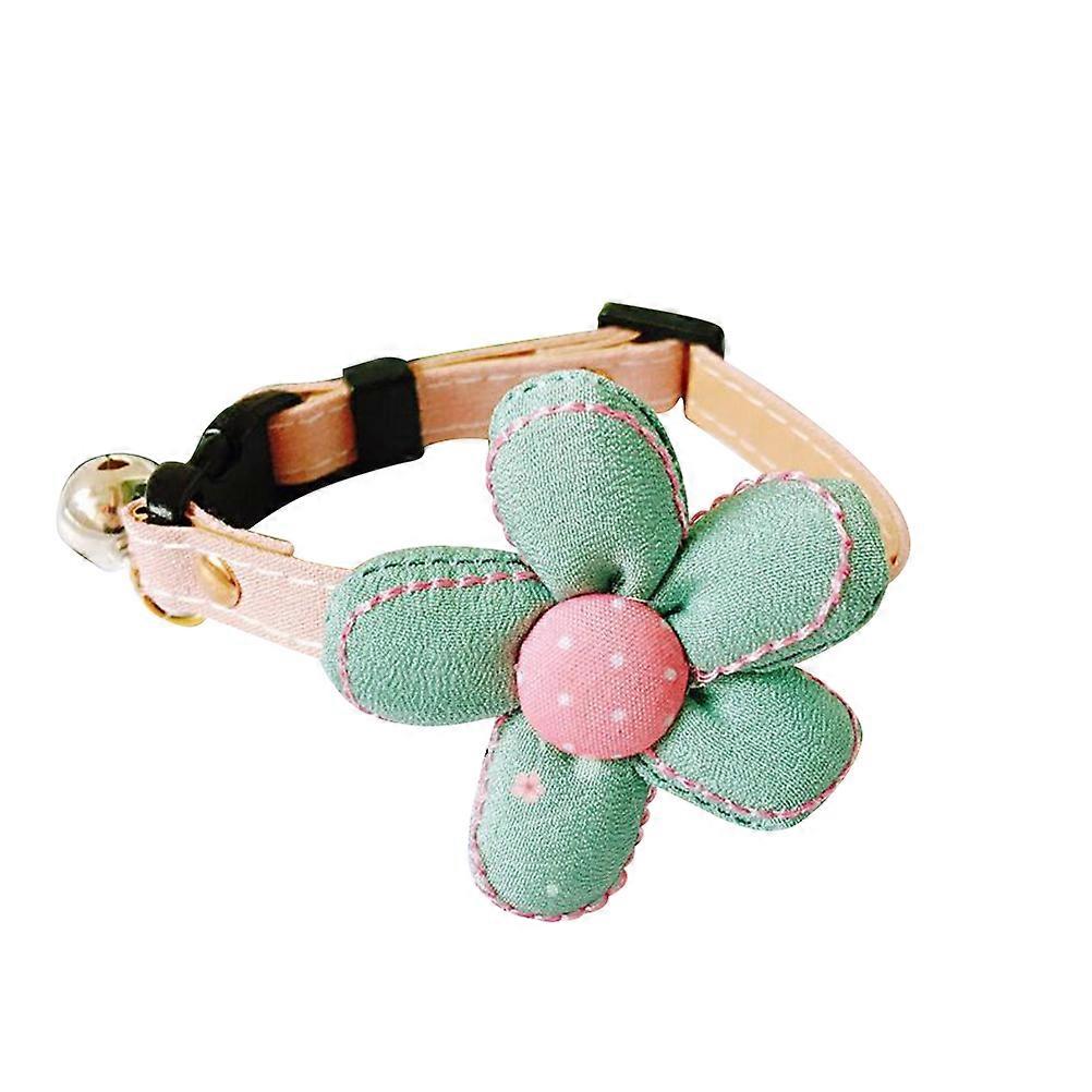 Flower Pet Collar Adjustable Buckle Necklace For Cat And Dog XS Size Green With Bell Sound 1Pcs