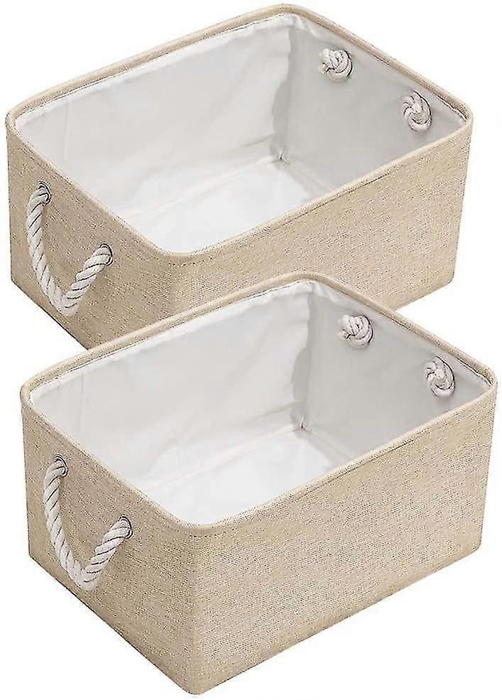 Foldable Beige Fabric Storage Basket with Cotton Rope Handles - Medium Size