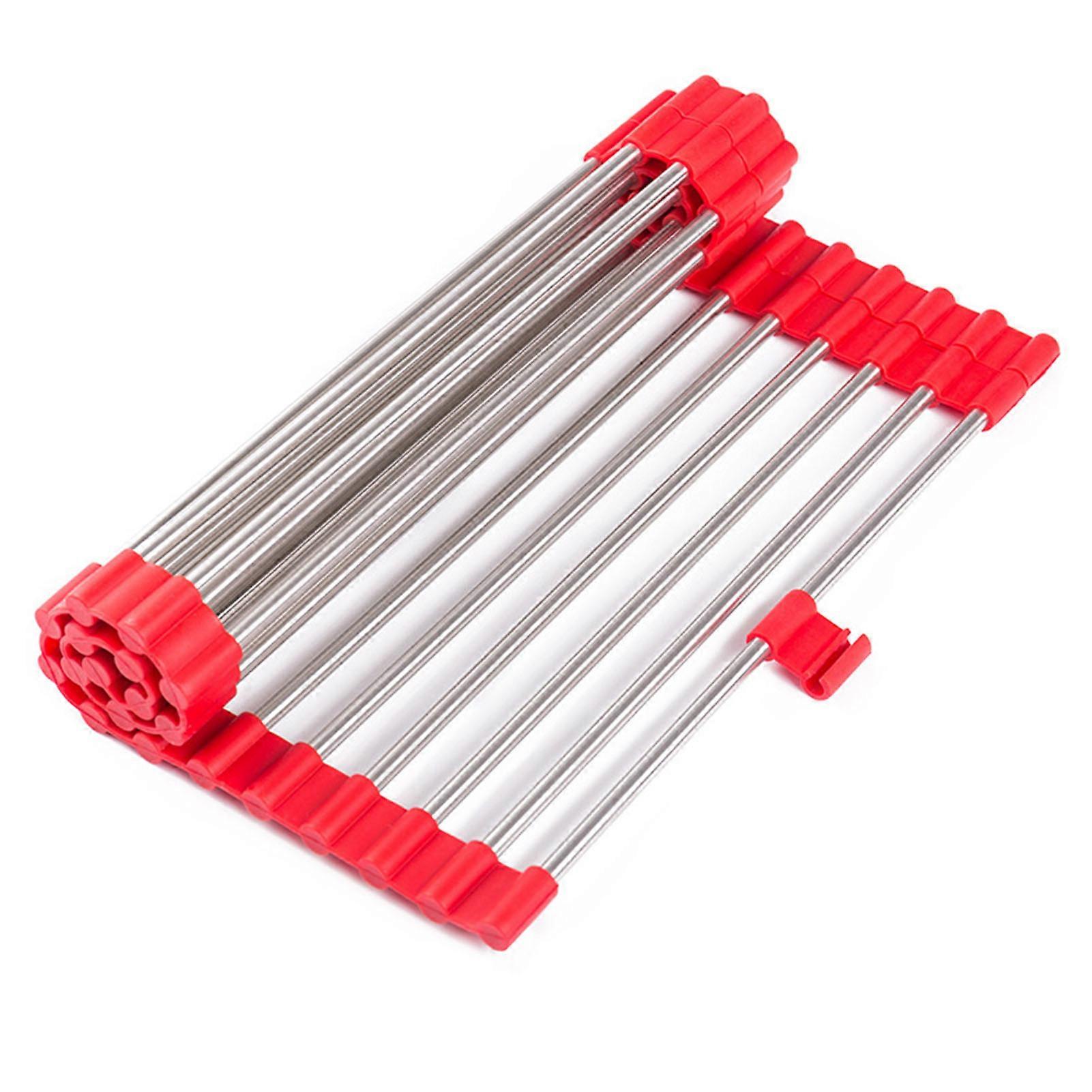 Foldable Bowl and Dish Drain Rack Stretchable Roll-up Stainless Steel Drain Rack for Kitchen Sink Bathroom Counter