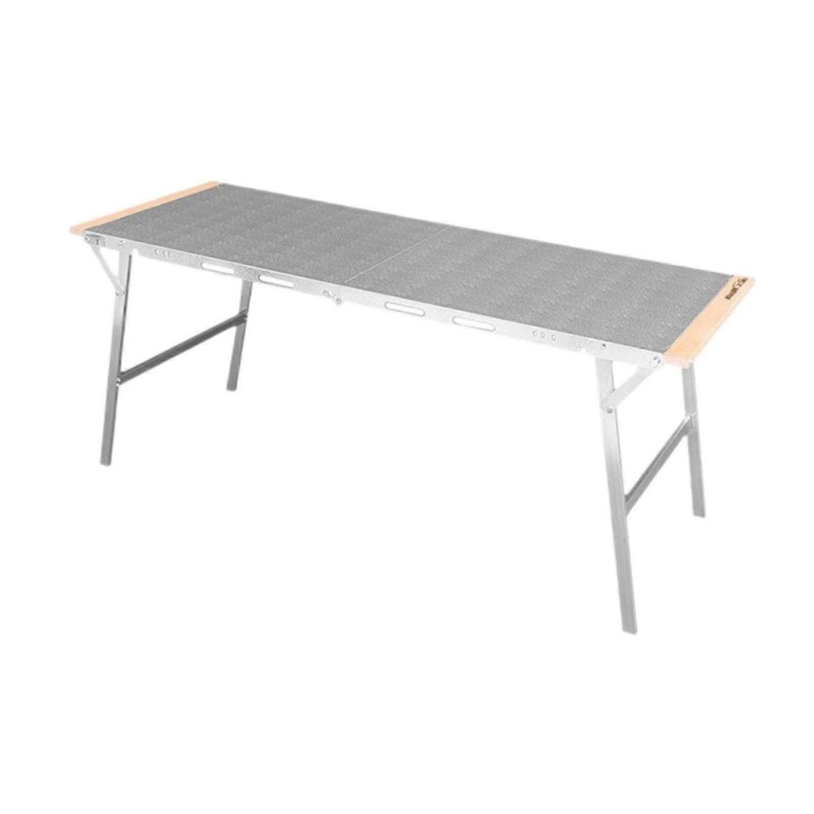 Description: Quality material: This folding table is made of quality stainless steel, which is wear resistant, high temperature resistant, and not easy to deform. It can be used repeatedly for a long timeAdjustable & Ergonomic: The height of the camping table can be adjusted to suit your needs, providing a comfortable ergonomic experience while supporting up to 50KG of weightStable folding table: This portable dining table has a smooth surface that is easy to clean and scratch resistant. It's sturdy and stable, preventing any wobblingSuitable size: The outdoor furniture folds down to 48cmx35cmx4.5cm and expands to 96cmx35cmx39.5cm when in use. Its compact structure and lightweight make it portableWide application: This fold in half table is nice for various scenarios such as catering; camping; tailgating; mountaineering; picnics, etc., making it an essential piece of outdoor equipment Specification: Material:Stainless Steel Size Chart: Unfolded Size 96cmx35cmx39.5cm/37.80inchx13.78inchx15.55inchFolded Size 48cmx35cmx4.5cm/18.90inchx13.78inchx1.77inch Package Includes: 1Folding Table Note: Please allow slightly errors 1-2cm differences due to manual measurement.