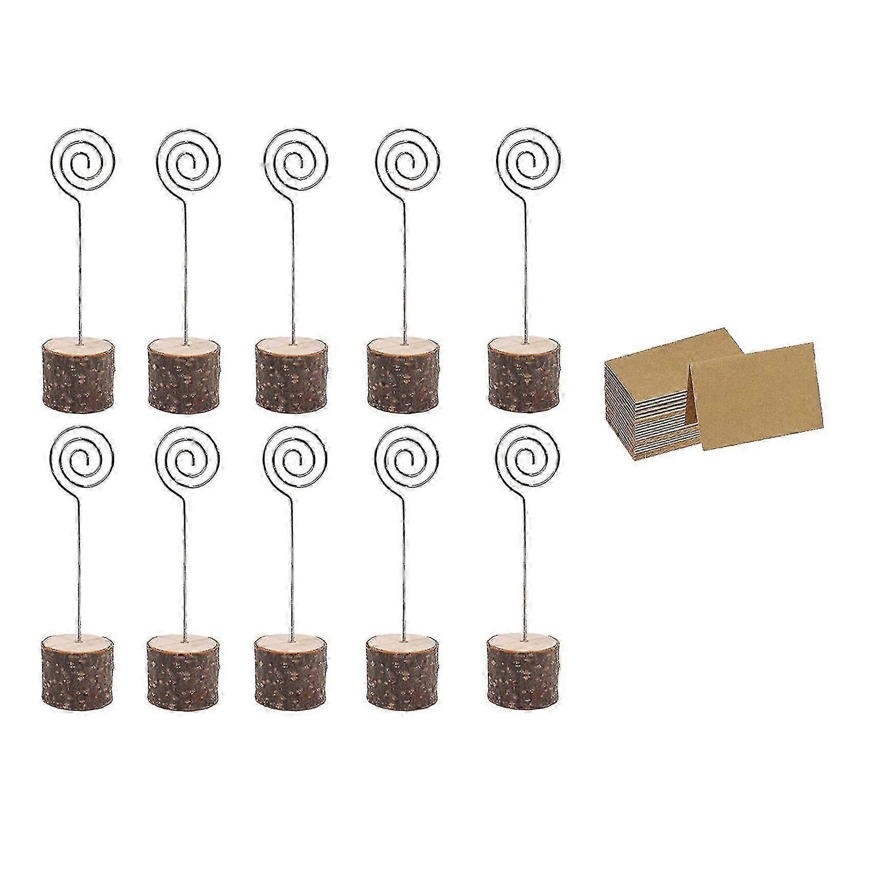 For 30pc Wood Place Card Holders With Swirl Wire Kraft Place Cards Rustic Wood Table Number Holders Stands Name Cards Holder