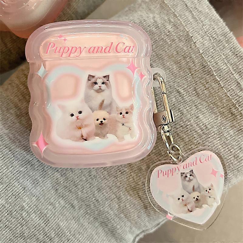 For Airpods 1 2 Pro Earphone Case Creative Cute Pink Background Kitten Dog Collar Wave Frame Pendant Anti-fall Shell for Airpods 3~010678