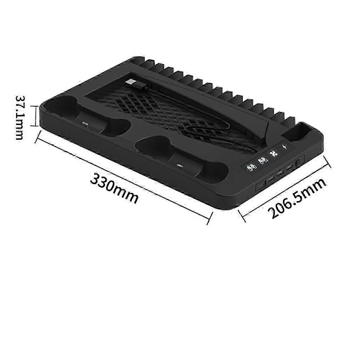 Enhanced Heat Dissipation :Designed for host, this base enhances heat dissipation, ensuring your gaming console stays cool even during intense gaming sessions. Versatile Storage Rack :Equipped with a game disc storage rack and headphone hook, it provides convenient storage for your gaming accessories. 7 Color Light Effect :The product features a captivating 7-color light effect, adding a vibrant touch to your gaming setup. Charging Stand Included :The stand comes with a handle charging stand, allowing you to charge your controller while playing games. Compatible with Brand :Specifically designed host, ensuring seamless compatibility and usage. Colour:Black Material:plastic Package Contents: 1x Cooling base 1x USB Cable 1x Hook Only the above package content, other products are not included. Note: Light reflection and different displays may cause the color of the item in the picture a little different from the real thing. The measurement allowed error is +/- 1-3cm.