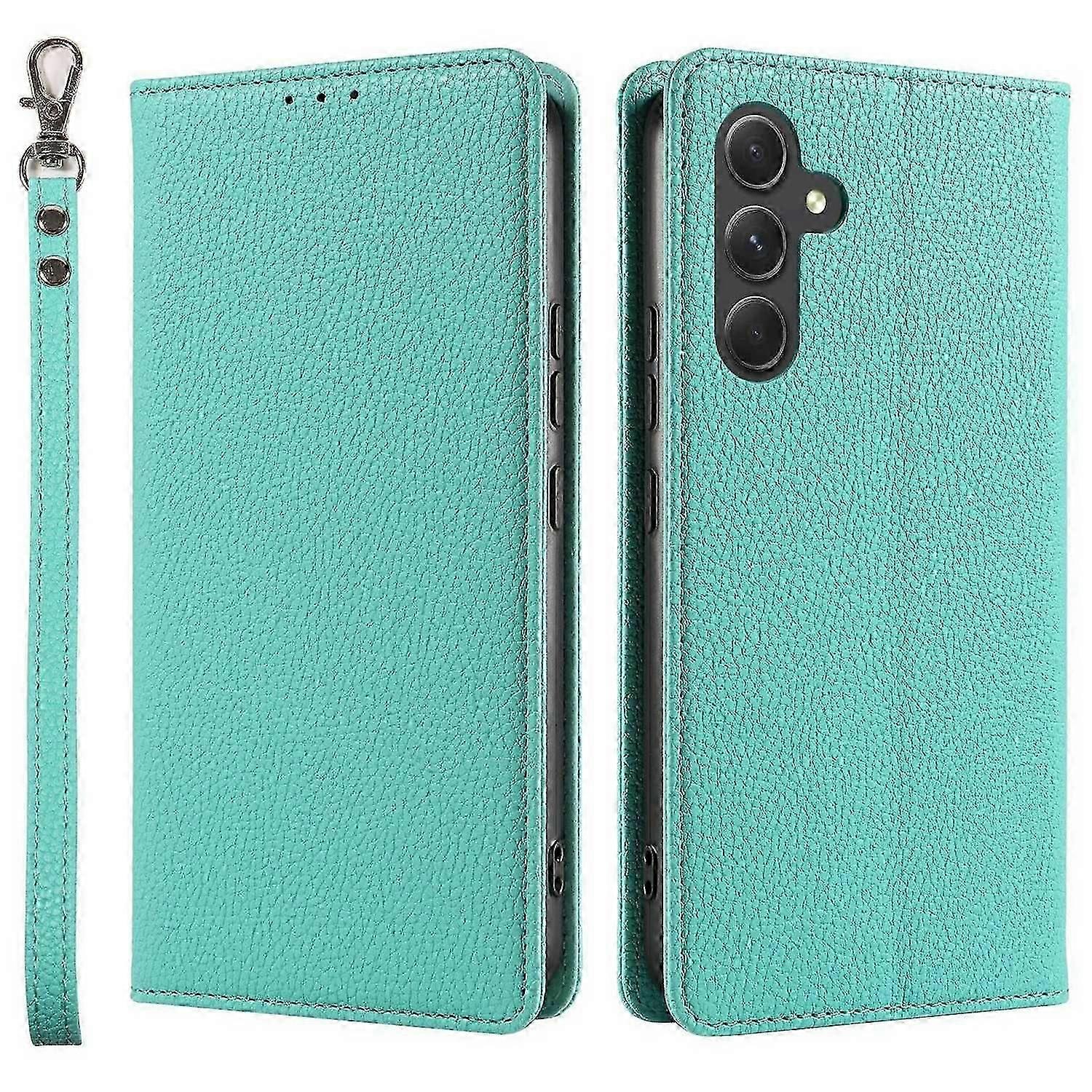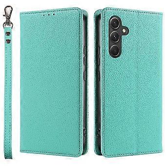 For Samsung Galaxy S25 Case Magnetic Litchi Texture Wallet Leather Phone Cover With Wrist Strap - Pi