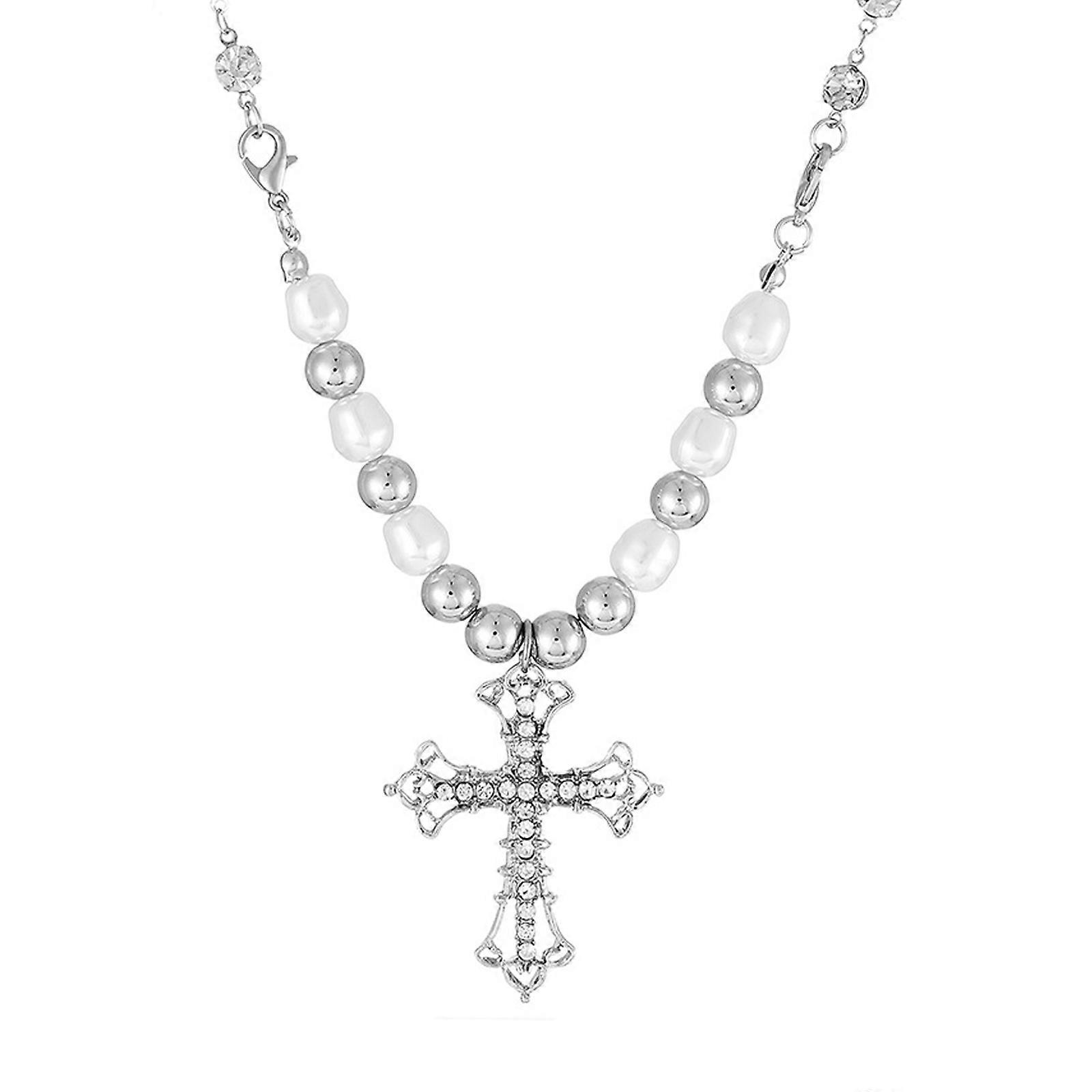 Full Diamondss Pearl Necklace Silver