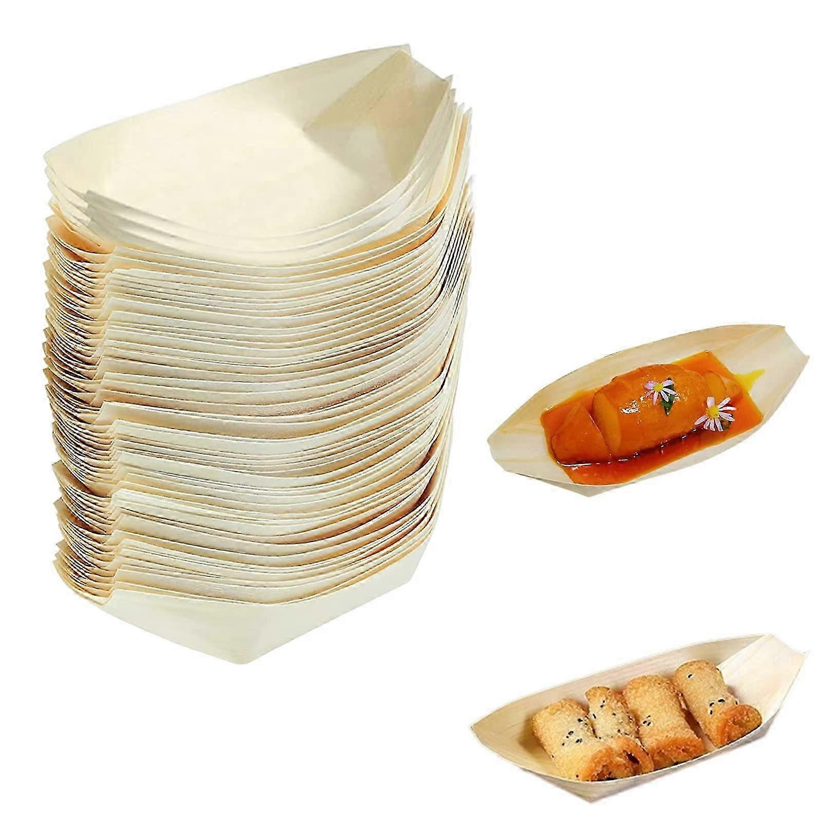 50 pcs Bamboo Boats for Food,Wooden Boat Plate Eco Friendly Disposable Paper Boats Food Sushi Serving Tray for BBQ, Camping