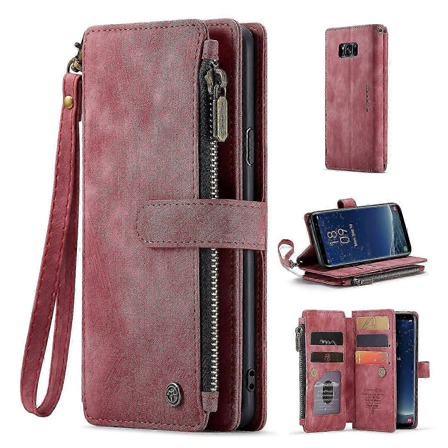 CASEME C30 Series Phone Zipper Pocket Wallet Case for Samsung Galaxy S8,PU Leather Multiple Card Slots Anti-fall Phone Cover - Red •【Premium Material】 Crafted from durable TPU and high-quality PU leather,this case provides a luxurious feel while offering reliable protection for your device •【Large Zipper Space】 Smoother,softer,and bigger space with the unique zipper design. Ideal for bills,cash,coins,and credit cards. The zipper won't scratch the phone screen •【Cash and Card Slots】 Features 10 card slots,1 cash slot,and 1 zipper purse. Conveniently store your essentials while ensuring easy access •【Kickstand Function】The built-in kickstand allows you to enjoy hands-free viewing,perfect for video calls and watching videos •【Auto-Magnet Function】 Securely holds your phone in place with automatic magnetic closure,providing easy access while keeping your phone safe •【Convenient Wrist Strap】Equipped with a wrist strap,this case is easy to carry and ensures your phone is always within reach Compatible with: •Galaxy S8 Package included: •1 x CASEME Leather Phone Case •1 x Strap •Accessory only,phone not included