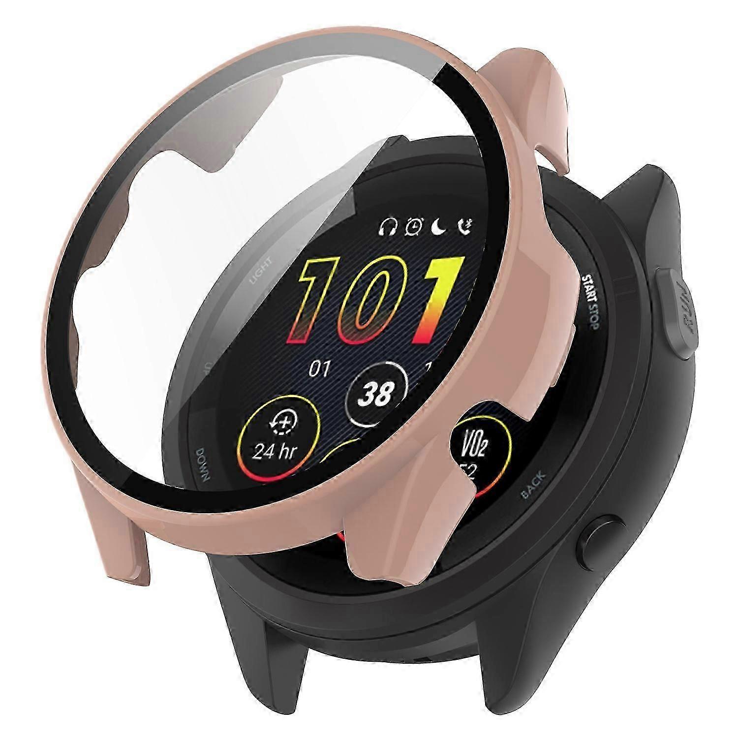 For Garmin Forerunner 265 Smart Watch Pc Watch Case With Tempered Glass Screen Protector - Black