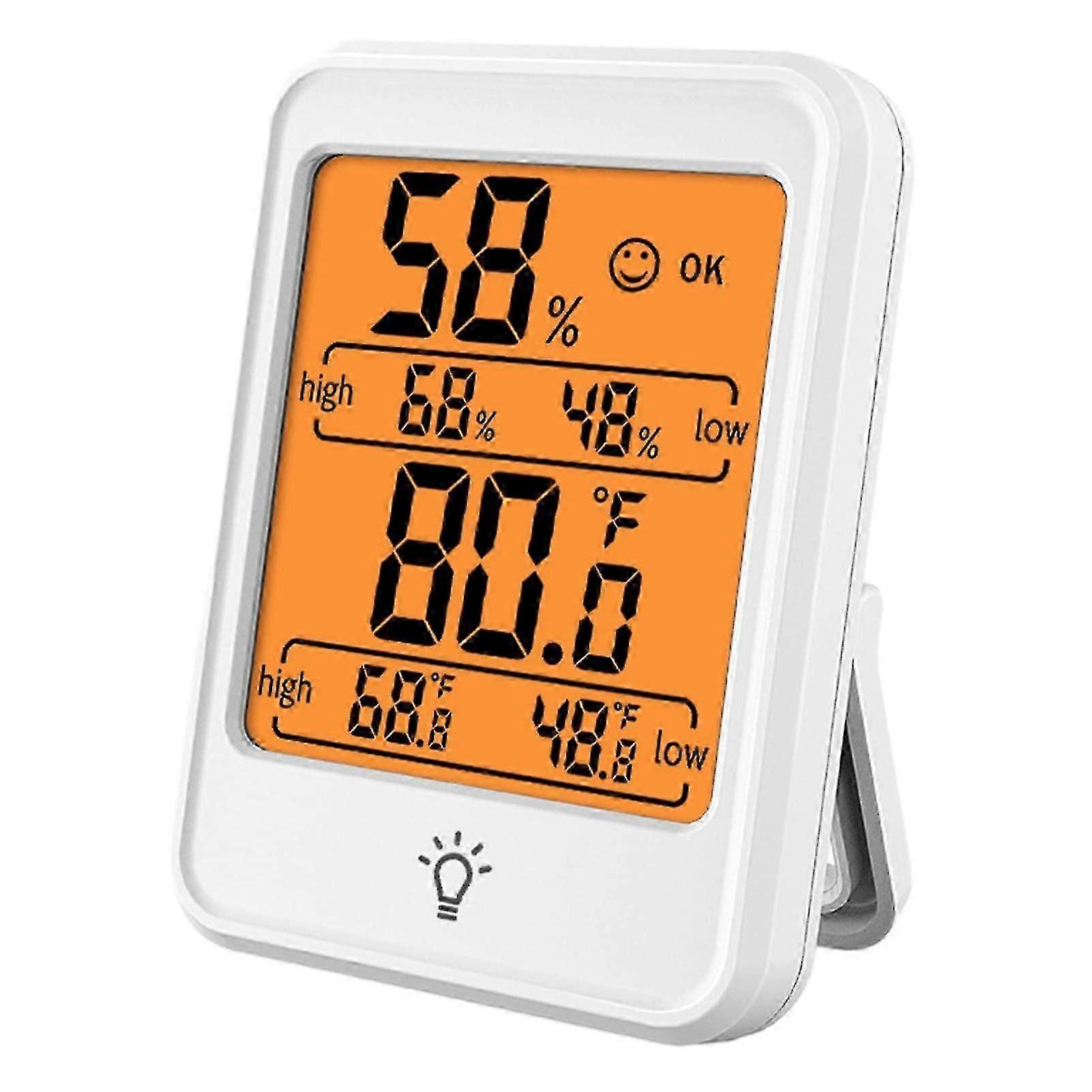 illustrate: 1. The indoor digital hygrometer is ideal for monitoring temperature and humidity in the room of the elderly and children. Also great for pet and plant rooms. A comfortable environment is very important for your family. 2. The indoor digital hygrometer is the perfect companion to humidifiers and dehumidifiers. You can use a humidifier or dehumidifier to change the room humidity based on the hygrometer readings. Specification: Product Name: Indoor Digital Hygrometer. Material: ABS White color Weight: about 79g Size: about 8*5.9*2.3cm/3.15*2.32* 0.90 inch Product List: 1 * Indoor Digital Hygrometer Comment: Due to lighting effects and shooting angles, there may be color difference in the product, please understand. Due to manual measurement, there is a certain error in the size of the product. High AccuracyThe air thermometer provides temperature measurement between -4.0F to 158.0F (-20C~70.0C) with an accuracy of 0.1F/C. The humidity measurement range is 10%-99%, and the accuracy is 1% RH. Easy Switch ButtonThe button on the back of the indoor digital thermometer can be easily switched between C and F to meet your different needs. Easy to CarryOne of the features of the temperature and humidity monitor is its small size and light weight, which can be easily put in your pocket and carried with you for travel and car use. ApplicablePress the bulb pattern button of the indoor thermometer to quickly turn on the backlight of the thermometer, and you can easily read the room temperature even in the dark. WIDELY USEDThe indoor digital hygrometer can be used as baby room thermometer and room temperature thermometer, also can be used as greenhouse thermometer, freezer thermometer, reptile thermometer and hygrometer.