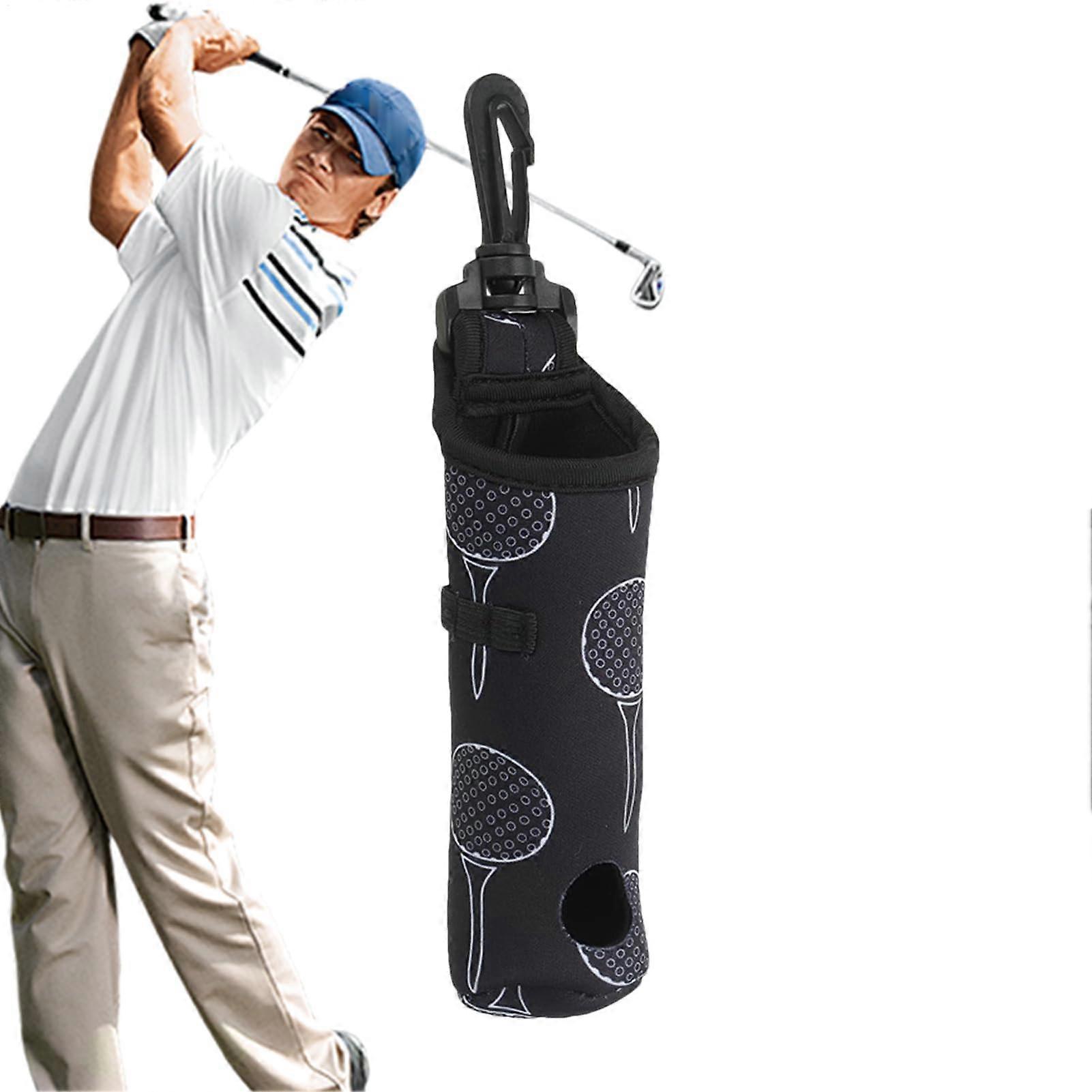 Golf Ball Bag - Foldable Storage Pouch with Belt Clip, 3-Tee Holder, Black, 4x15 cm, Multi-Functional Golf Accessories for Practice