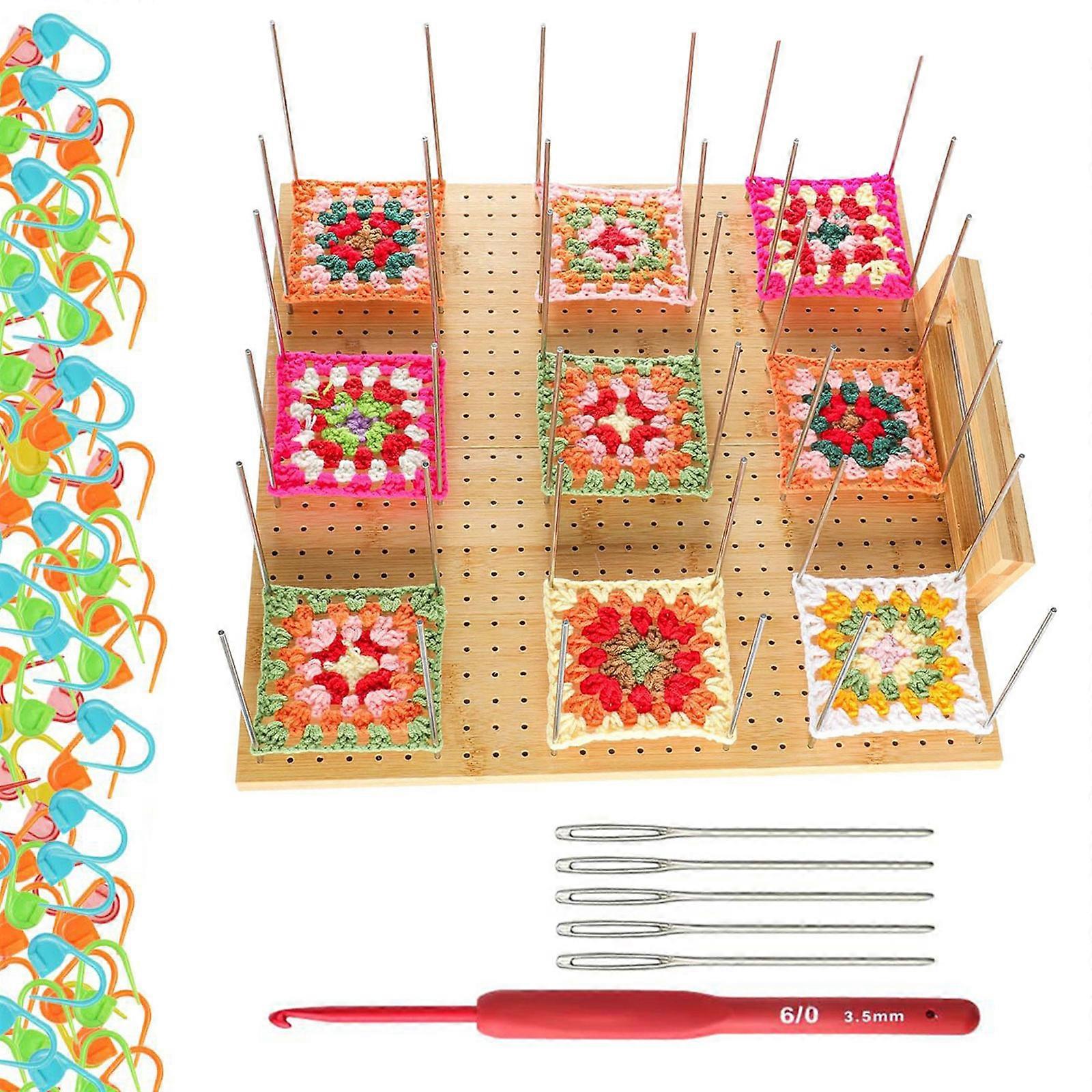 Granny Square Blocking Board Crochet Blocking Boards with Crochet Hook Large Eye Needle Set for Crochet Knitting Multicolor
