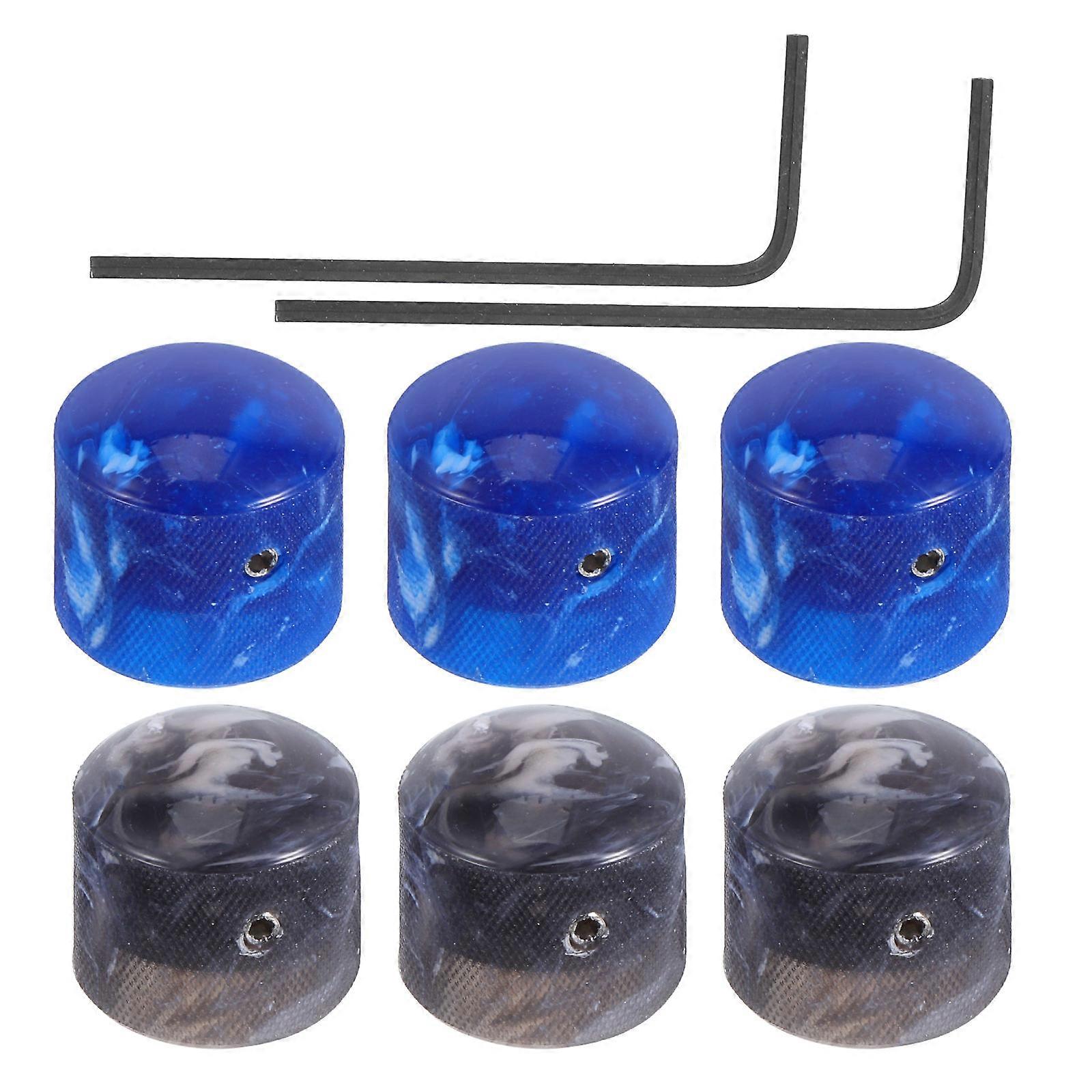 Meet the needs of musicians looking for excellent accessories with these electric guitar potentiometer knobs. Their stylish design and reliable performance make them a valuable addition to your instrument. Perfect for adjusting tone and volume, these knobs help you achieve the perfect sound for any genre or playing style. Features -Color:Assorted Color -Material:Plastic, metal -Size:1.80X1.80X1.80cm/0.71X0.71X0.71in -Size:4.70X1.70X0.15cm/1.85X0.67X0.06in -Shaft hole diameter: 6 mm. -Inner diameter: 15 mm. -Wrench diameter: 1.5 mm. -Precision potentiometer knob: achieve smooth and accurate tone adjustments with high sensitivity rotary knobs designed for electric guitars -Volume Tone Control Knobs: durable materials make sure longterm stability, minimizing the need for replacements or repairs -Convenient installation: effortless setup process makes upgrading your guitar knobs simple and straightforward -Dynamic sound control: perfect for creating subtle or bold changes in tone and volume, enhancing your musical versatility -Eye-catching design: blue and gray color combination adds a stylish and stylish touch to your guitar’s appearance Package list: 9 x blue knobs 9 x grey knobx 6 x wrench