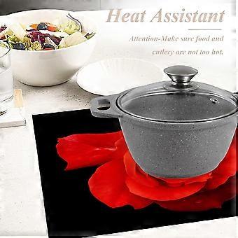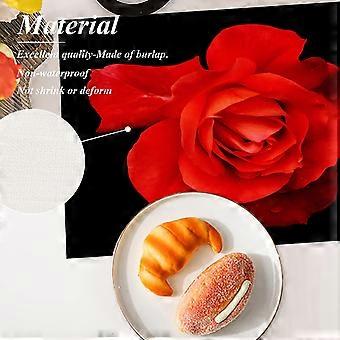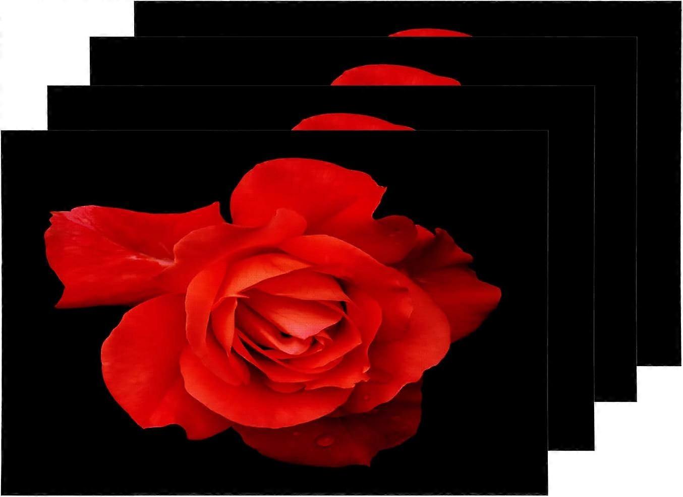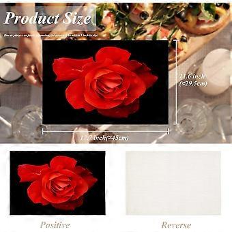 Güzel Kırmızı Gül Servis Altlıkları, Siyah İzole Masa Mat Üzerinde Çiçek Keten Çuval Bezi Yemek Masası Mutfak Masası için Yıkanabilir Çift Katlı Isı Yalıtımı