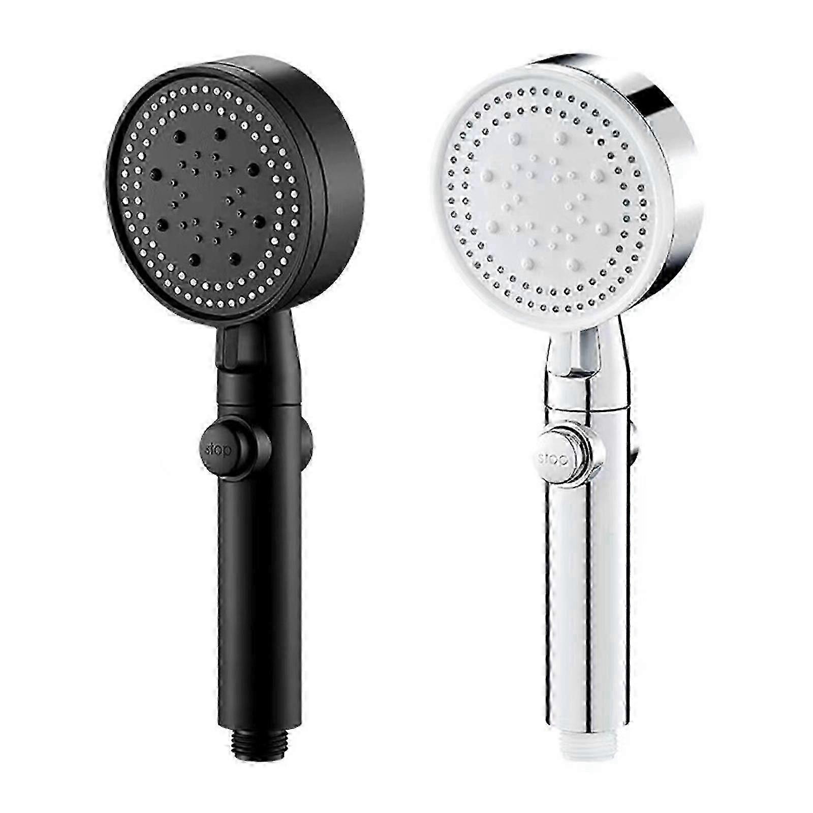 This handheld shower head features 5 spray modes, high pressure for better flow, water-saving button for convenience, easy installation, and durable materials. Ideal for children's care, pet care, bathing, and cleaning applications. Features: 1. HIGH PRESSURE SHOWER HEAD: The multifunctional hand-held shower kit adopts the latest upgraded internal structure, which can provide strong pressure and large flow even under the condition of low water pressure and low flow, and prevent blockage and hard water accumulation. It is an ideal choice for children's care, pet care, bathing, and cleaning applications 2. 5 SPRAY SETTINGS: This hand-held shower has 5 spray functions, rain, spray, rinse, and other combination modes and water-saving modes. By gently turning the handle on the shower panel, you can switch modes easily to enjoy different shower experiences. 3. WATER SAVING ON/OFF PAUSE BUTTON: The handheld shower head with on / off switch can save your water and bring you a good experience when you take a bath. Especially during bathing, there is no need to turn off the water valve and readjust the water temperature. 4. SUPERIOR MATERIALS: The hand-held shower head is made of high-quality material. The exquisite chrome plated surface makes it light, durable, fade-proof, lead-free, and water stain resistant, bringing you a more convenient and comfortable shower experience. 5. EASY TO INSTALL: Tool-free connection takes just a few minutes, no plumber is needed. We provide all the accessories needed for installation. Specification: Material: ABS Color: Black, Silver Package Size: 10 x 8 x 29cm Package Weight: 310g Package Included: 1 x Shower Head + 1 x Tube or 1 x Shower Head + 1 x Tube + 1 x Base
