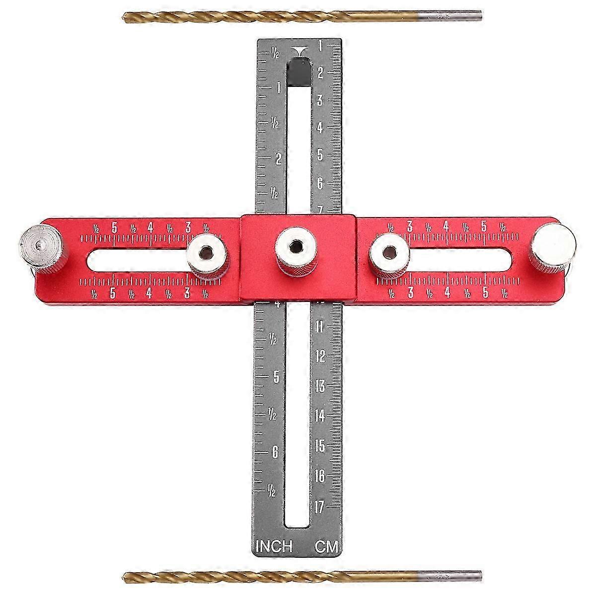 Product name: Drawer handle punch Standard: Tool set Scope of application: cabinet handle punch positioning Application scenario: Cabinet, handle hole positioning Colour:Red+Gray Material:Aluminum Alloy Package Contents: 1 * handle punching positioner Only the above package content, other products are not included. Note: Light reflection and different displays may cause the color of the item in the picture a little different from the real thing. The measurement allowed error is +/- 1-3cm.