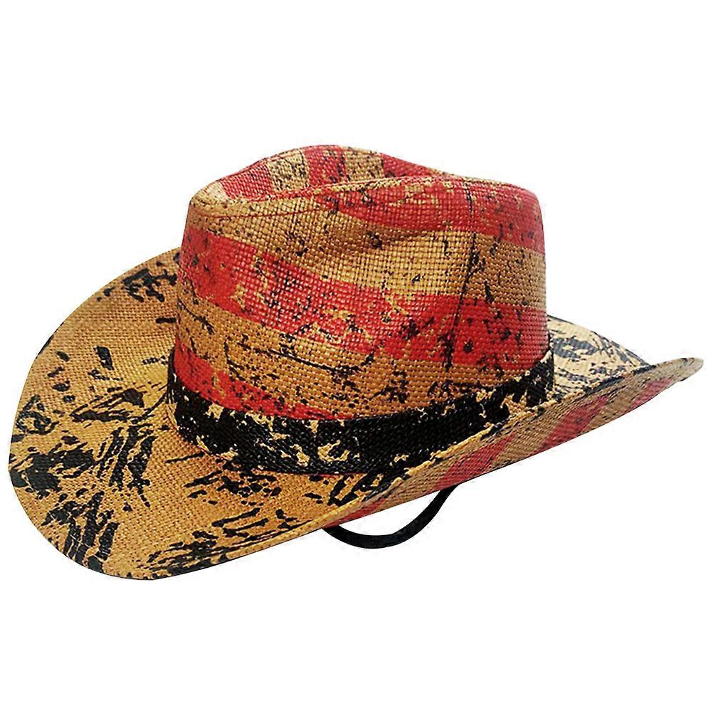 Straw Sun Hat Men Western Style Hat Unisex Hat American Flag Stars Ceremonies 13.8×11.8×3.5in 1Pcs