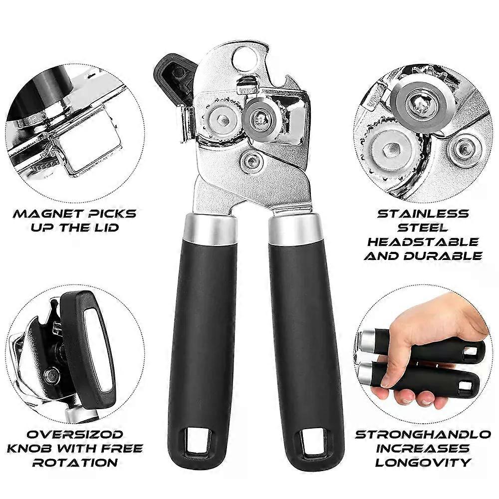 Heavy Duty Manual Can Opener with Smooth Edge Safety Design - Ergonomic Soft Handle Built-in Bottle Opener Rust-Resistant