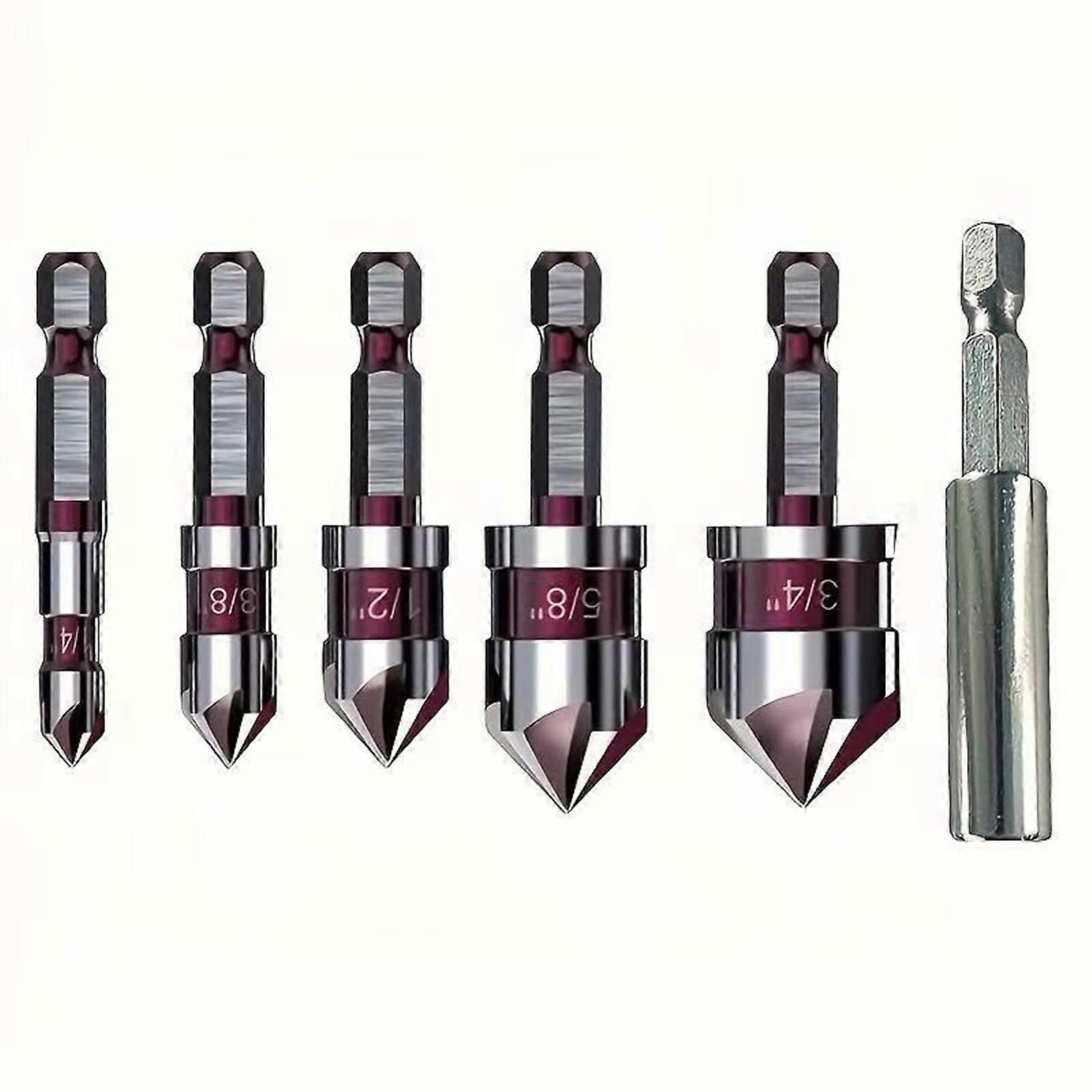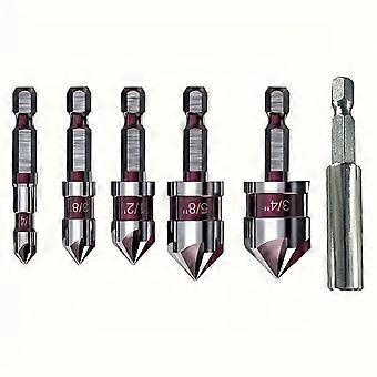 Professional 82 Degree Hexagonal Shank Drill Bit Set 5 Size 5 Flute Design For Medium Hardness Metal Plastic Woodworking Multicolor